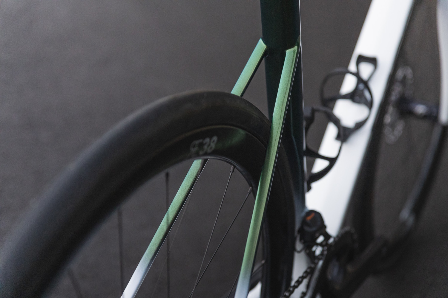 The 35-mm tire clearance allows wider tires to be mounted and ventures beyond the asphalt onto light gravel roads. Integrated Paradigma technology and