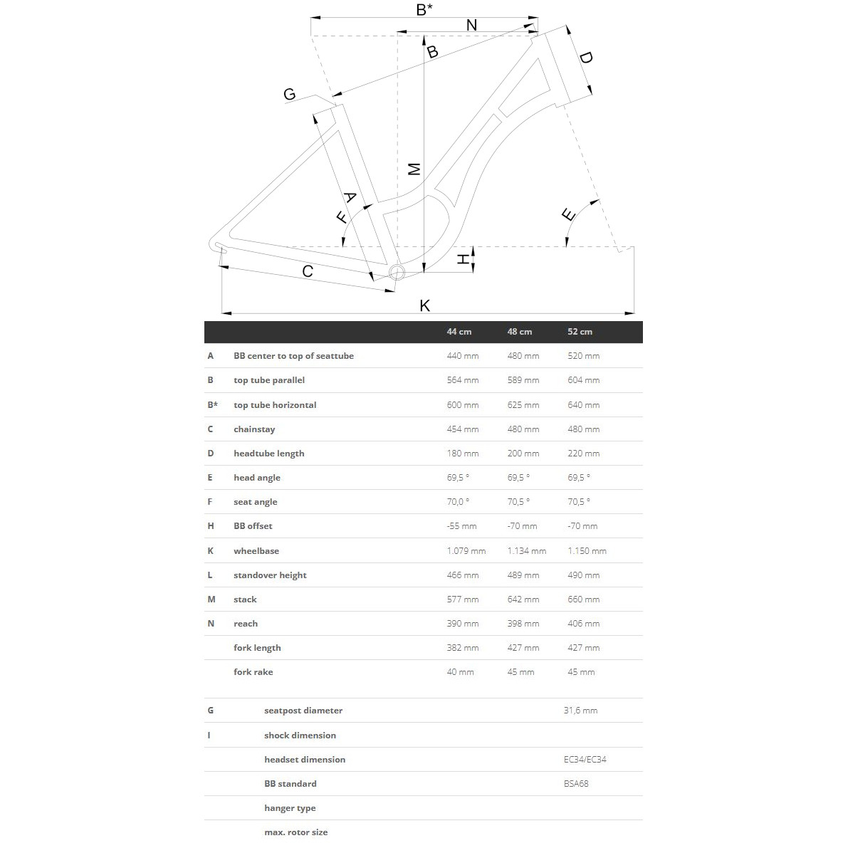 • The frame size 44cm has 26″ wheels while the sizes 48cm and 52cm have 28″ wheels.