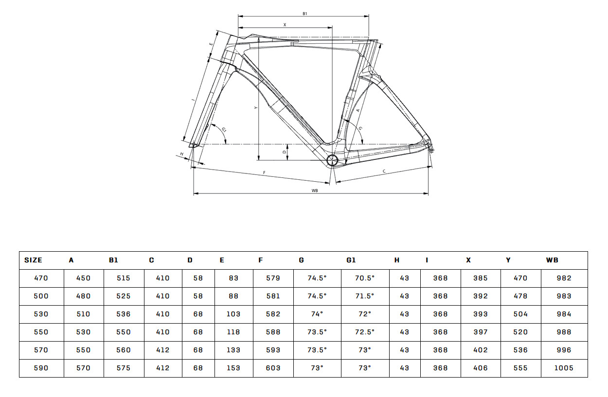 Ext: 90×400-47/50cm ; 100×420-53cm ; 110×420-55/57cm; 120×440-59/61cm fork: Full Carbon Aero w/Bianchi CV System