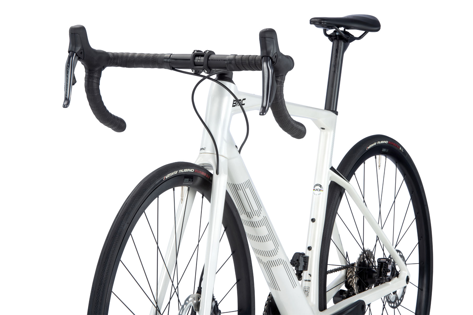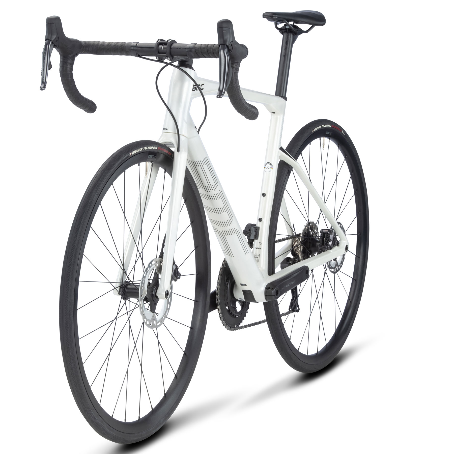 Fact Sheet of BMC ROADMACHINE THREE – Carbon Roadbike – 2023 – metallic off-white / black Product Name: BMC ROADMACHINE THREE – Carbon Roadbike – 2023 – metallic off-white / black Manufacturer: BMC Bikes Item Code: BMC577687 activity: Cycling gender: men material: Carbon usage bikesport: Road Bike ,Endurance chain: Shimano Ultegra cassette: Shimano Ultegra shifter: Shimano Ultegra Di2 rear derailleur: Shimano Ultegra Di2 ,12-speed front derailleur: Shimano Ultegra Di2 chainring ratio: 50-34 crankset: Shimano Ultegra brakes: Shimano Ultegra ,160/140mm wheels: XRD-522 ,Tubeless Ready seat post model: Roadmachine Premium Carbon D-Shaped ,15mm Offset saddle: Fizik Taiga handle bar: BMC RAB 03 ,Ergo Top Shape ,Compact Bend stem: BMC RSM01 fork: Roadmachine Premium Carbon frame: Roadmachine Premium Carbon ,Tuned Compliance Concept Endurance groupset: Shimano Di2 (electronic) gear ratio: 11-34 number of gears – front: 2 shifting system: 12-speed shifting actuation: Electronic brake type: Disc Brake wheel size: 28" (622mm) seatpost: Seatpost rigid ASTM: Category 2 tires: Vittoria Rubino ,28mm brake actuation: Hydraulic Model year: 2023 Color: White fork construction: Rigid Fork cable routing: internal Manufacturer page: http://www.bmc-switzerland.com |