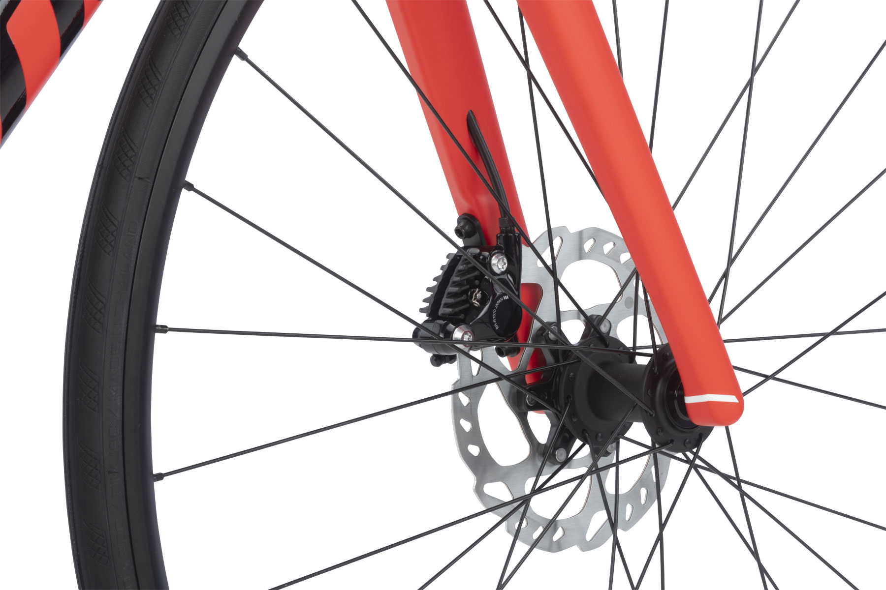 An aerodynamically reshaped fork with stealth dropouts and integrated thru axle nut shows that high technical know-how can go hand in hand with beautiful, minimalist aesthetics.
