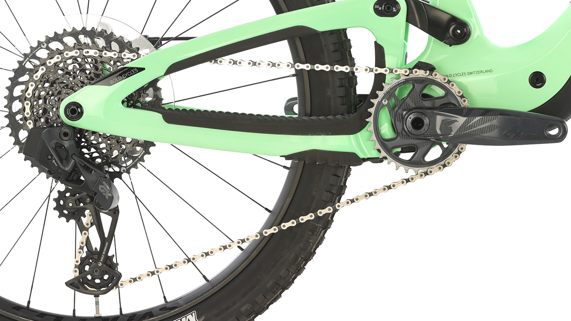 - SRAM GX AXS Eagle 12-speed drivetrain performs exceptionally well in the most demanding riding conditions