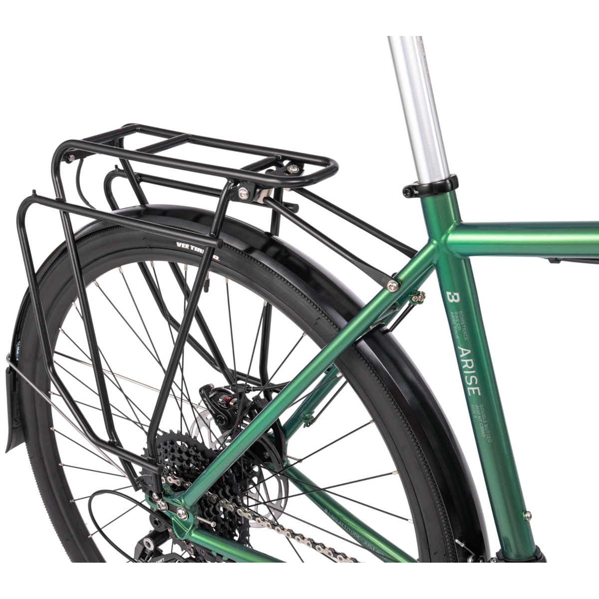 Fact Sheet of Bombtrack ARISE TOUR – Touring Bike – 2023 – metallic green Product Name: Bombtrack ARISE TOUR – Touring Bike – 2023 – metallic green Manufacturer: Bombtrack Bikes Item Code: BMT627775 activity: Cycling gender: men material: Steel usage bikesport: Trekking hubs: KT Dynamo / Bombtrack Arc rims: WTB ST i19 TCS 2.0 chain: KMC X10 cassette: microSHIFT CS-H103 shifter: microSHIFT BS-M10 rear derailleur: microSHIFT RD-M62L front derailleur: microSHIFT FD-R552-B bottom bracket: BSA chainring ratio: 46-30 crankset: Bombtrack Ames ,AL brakes: TRP SPYRE C ,160/160mm seat post model: Bombtrack Beech ,27.2mm x 315mm saddle: Bombtrack Fuzz bar tape: Bombtrack Escape handle bar: Bombtrack CX-10 ,31.8mm ,10° Flare stem: Bombtrack Roam ,AL ,-7° fork: 4130 Cr-Mo headset: NECO H282 frame: 4130 Cr-Mo groupset: microSHIFT gear ratio: 11-42 number of gears – front: 2 shifting system: 10-speed shifting actuation: Mechanical bike extras: with Lighting System ,with Fender ,with Carrier brake type: Disc Brake wheel size: 27 ,5" / 650B (584mm) ,28" (622mm) bike special accessories: Bombtrack Pipe Fender ,Tubus Tara / Logo Evo Rack bike lights: Supernova E3 Pure 3 / E3 Tail Light 2 seatpost: Seatpost rigid ASTM: Category 2 tires: VEE Speedster ,38-584 / 40-622 weight limit: 130kg brake actuation: Mechanical Model year: 2023 Collection: Full year Color: Green fork construction: Rigid Fork weight: 14700g cable routing: external Weight Source: Manufacturer Weighed Version: M Manufacturer page: http://bombtrack.com |