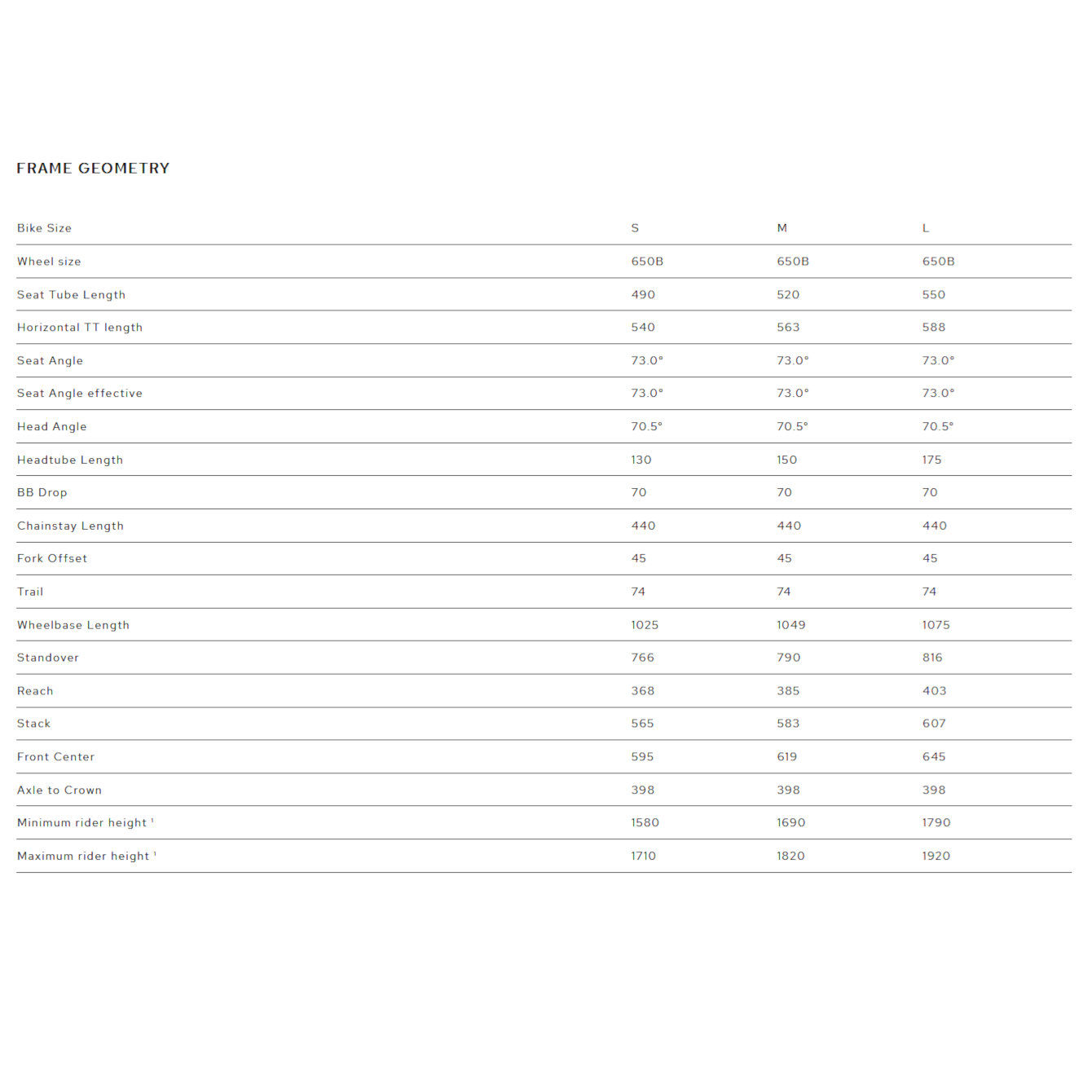 • Tire clearance: 650B x 50C