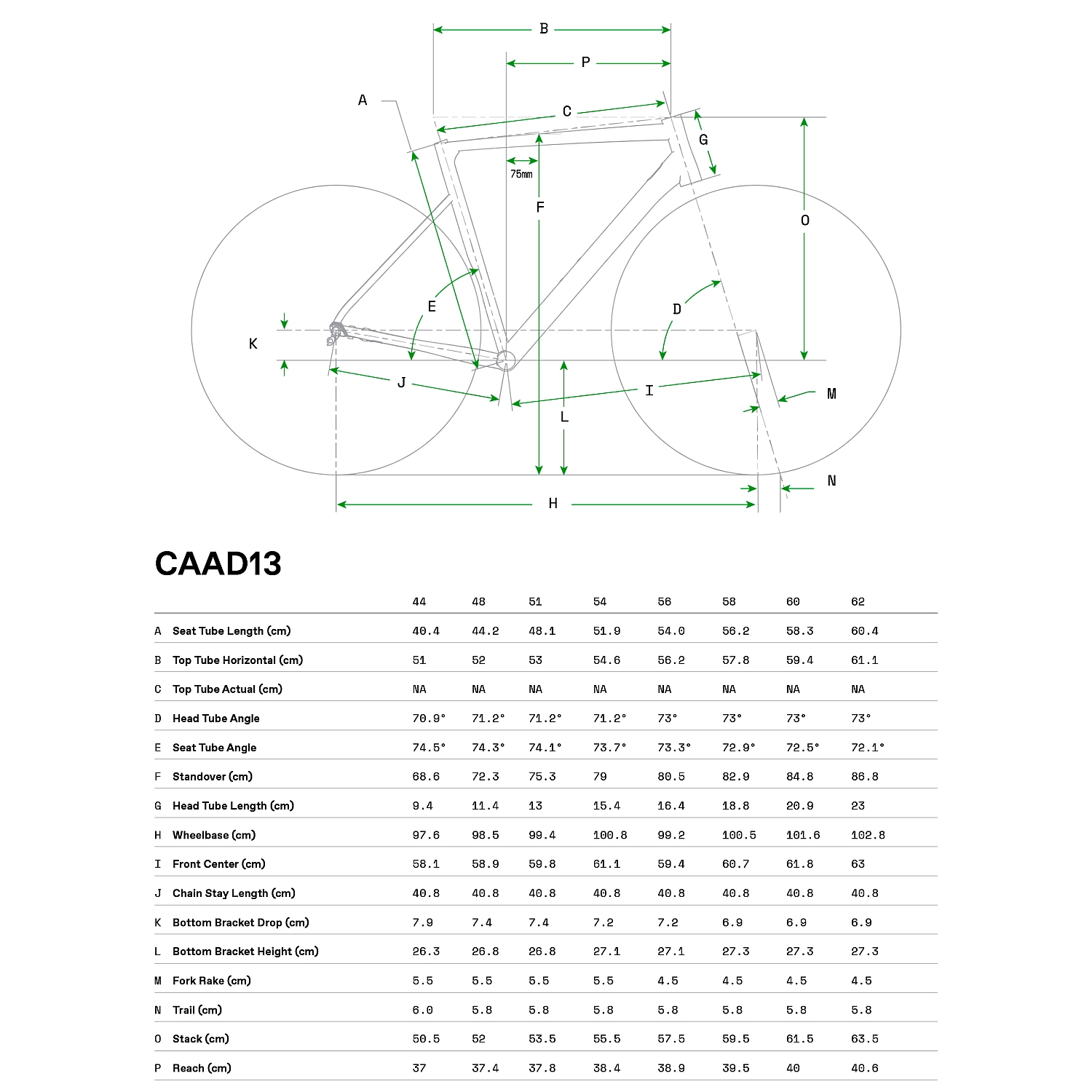 Fact Sheet of Cannondale CAAD13 Disc – Shimano 105 Roadbike – 2022 – candy red Product Name: Cannondale CAAD13 Disc – Shimano 105 Roadbike – 2022 – candy red Manufacturer: Cannondale Bikes Item Code: CAD577510 activity: Cycling gender: men material: Aluminium usage bikesport: Road Bike hubs: Formula CL-712 ,12x100mm ,Centerlock / Formula RXC-400 ,12x142mm ,Centerlock spokes: Stainless steel ,14g rims: DT Swiss R470 db ,28h chain: Shimano HG601 cassette: Shimano 105 shifter: Shimano 105 rear derailleur: Shimano 105 GS ,11-speed front derailleur: Shimano 105 ,braze-on bottom bracket: Cannondale BB30 ,24mm adapter chainring ratio: 52-36 crankset: Shimano RS510 brakes: Shimano 105 hydraulic disc ,160/160mm seat post model: HollowGram 27 KNØT ,aluminium ,2 bolt clamp ,330mm saddle: Fizik Aliante Delta ,S-alloy rails bar tape: Cannondale Bar Tape ,3.5mm handle bar: Cannondale 3 ,6061 aluminium ,Compact stem: Cannondale 3 ,6061 aluminium ,31.8 ,7° fork: CAAD13 Full Carbon ,SAVE ,1-1/8" to 1-1/4" ,12x100mm ,55mm offset (47-54cm) 45mm offset (56-62cm) headset: CAAD13 ,integrated ,1-1/8" – 1-1/4" frame: SmartForm C1 Premium alloy ,integrated cable routing with Switchplate ,12x142mm ,SAVE ,flat mount disc ,Di2 ready groupset: Shimano gear ratio: 11-30 number of gears – front: 2 shifting system: 11-speed shifting actuation: Mechanical brake type: Disc Brake wheel size: 28" (622mm) bike special accessories: removable fender bridge seatpost: Seatpost rigid tires: Vittoria Rubino Pro Bright Black ,700 x 25c brake actuation: Hydraulic Model year: 2022 Color: Red fork construction: Rigid Fork manufacturer item code: C13321U cable routing: internal Manufacturer page: http://www.cannondale.com/eur_de |