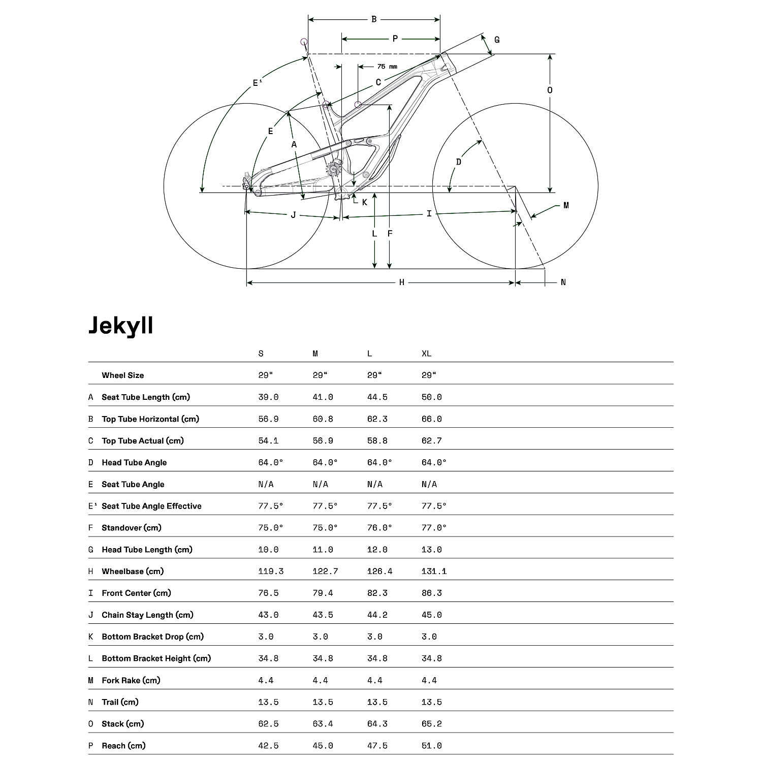 Fact Sheet of Cannondale JEKYLL 1 – 29" Carbon Mountainbike – 2023 – Ginger Product Name: Cannondale JEKYLL 1 – 29" Carbon Mountainbike – 2023 – Ginger Manufacturer: Cannondale Bikes Item Code: CAD639224 activity: Cycling gender: men material: Carbon usage bikesport: MTB ,Enduro hubs: Formula / SRAM MTH 700 spokes: DT Swiss Factory rims: WTB KOM Trail i30 TCS ,Tubeless Ready chain: SRAM NX Eagle cassette: SRAM XG-1275 GX Eagle shifter: SRAM GX Eagle rear derailleur: SRAM GX Lunar Eagle bottom bracket: SRAM DUB BSA MTB73 chainring ratio: 30 crankset: SRAM X1 Eagle B148 CL55 brakes: SRAM Code RSC ,220/200mm seat post model: Cannondale DownLow Dropper saddle: Fabric Scoop Shallow Elite handle bar: Cannondale 1 Carbon Riser ,30mm Rise ,8° Backsweep ,5° Upsweep ,780mm stem: FSA Grid 35 fork: Fox Float Factory 38 headset: Integrated Sealed Bearing frame: Carbon groupset: SRAM gear ratio: 10-52 number of gears – front: 1 shifting system: 12-speed shifting actuation: Mechanical brake type: Disc Brake wheel size: 29" (622mm) grips: Cannondale TrailShroom shock: Fox Float Factory X ,205x65mm Metric Trunnion seatpost: Dropper post frame type: Full Suspension travel fork: 170mm tires: Maxxis Assegai (29 x 2.50") / Maxxis Minion DHR II (29 x 2.40") travel frame: 165mm brake actuation: Hydraulic Model year: 2023 Color: Yellow ,Olive fork construction: Classic Suspension Fork manufacturer item code: C21102U cable routing: internal Manufacturer page: http://www.cannondale.com/eur_de |