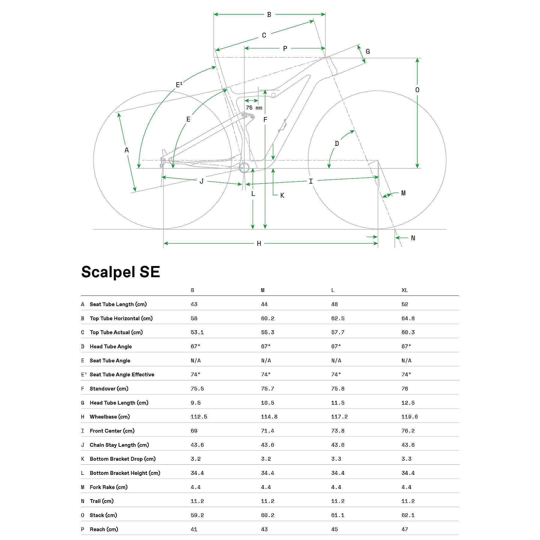 Fact Sheet of Cannondale SCALPEL CARBON SE Ultimate – 29" Mountainbike – 2023 – jade Product Name: Cannondale SCALPEL CARBON SE Ultimate – 29" Mountainbike – 2023 – jade Manufacturer: Cannondale Bikes Item Code: CAD577551 activity: Cycling gender: men material: Carbon usage bikesport: MTB ,Cross Country ,Trail chain: SRAM GX Eagle cassette: SRAM XG-1295 shifter: SRAM Eagle AXS rear derailleur: SRAM X01 Eagle AXS bottom bracket: SRAM DUB PF30 MTB83 chainring ratio: 34 crankset: SRAM X1 Eagle Carbon brakes: SRAM Level TLM ,160/160mm wheels: HollowGram 25 ,Superlight Hi-Impact Carbon seat post model: Cannondale DownLow Dropper ,31.6 saddle: Fabric Scoop Flat Race handle bar: Cannondale 1 Riser ,Carbon ,31.8mm ,9° backsweep ,4° rise ,780mm stem: Cannondale 1 ,7075 Alloy ,31.8 ,7° fork: Lefty Ocho 120 Carbon headset: Integrated Sealed Bearing frame: Scalpel SE Carbon ,Proportional Response Tuned groupset: SRAM AXS (electronic) gear ratio: 10-52 number of gears – front: 1 shifting system: 12-speed shifting actuation: Electronic brake type: Disc Brake wheel size: 29" (622mm) bike special accessories: Stash Kit (Fabric 8-in-1 Mini Tool and Dynaplug tubeless puncture repair tool) grips: Cannondale XC Silicone shock: RockShox SIDLuxe Ultimate seatpost: Dropper post frame type: Full Suspension travel fork: 120mm tires: Maxxis Ardent Race ,29 x 2.35" / Maxxis Recon Race ,29 x 2.25" travel frame: 120mm brake actuation: Hydraulic Model year: 2023 Color: Green fork construction: Lefty manufacturer item code: C24302M10 cable routing: internal Manufacturer page: http://www.cannondale.com/eur_de |