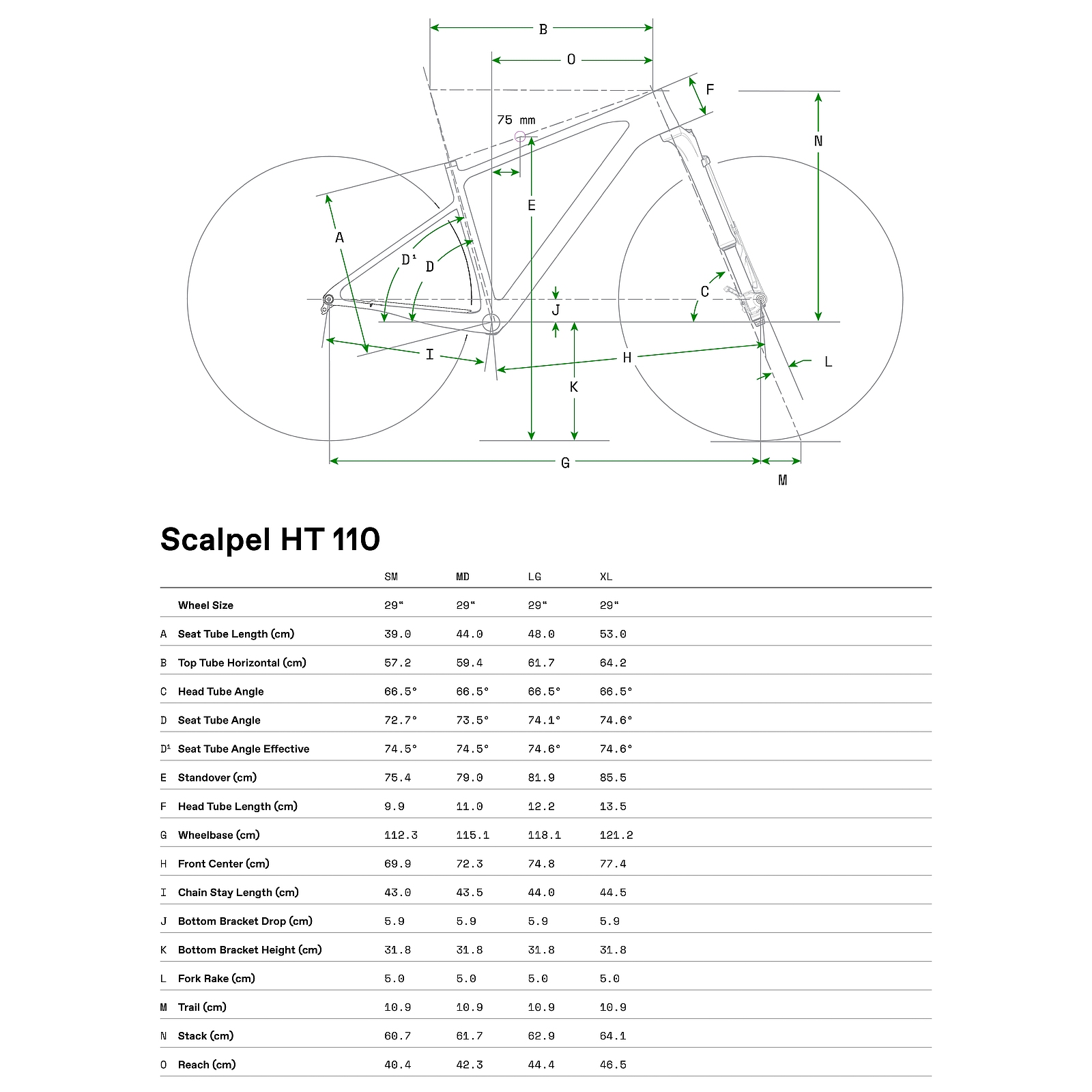 Stay centered. Cannondale Scalpel HT’s Proportional Response size-specific chainstays and steep seat angle keep you balanced between the wheels for better traction and power on the ups, and more confident control on the downs.