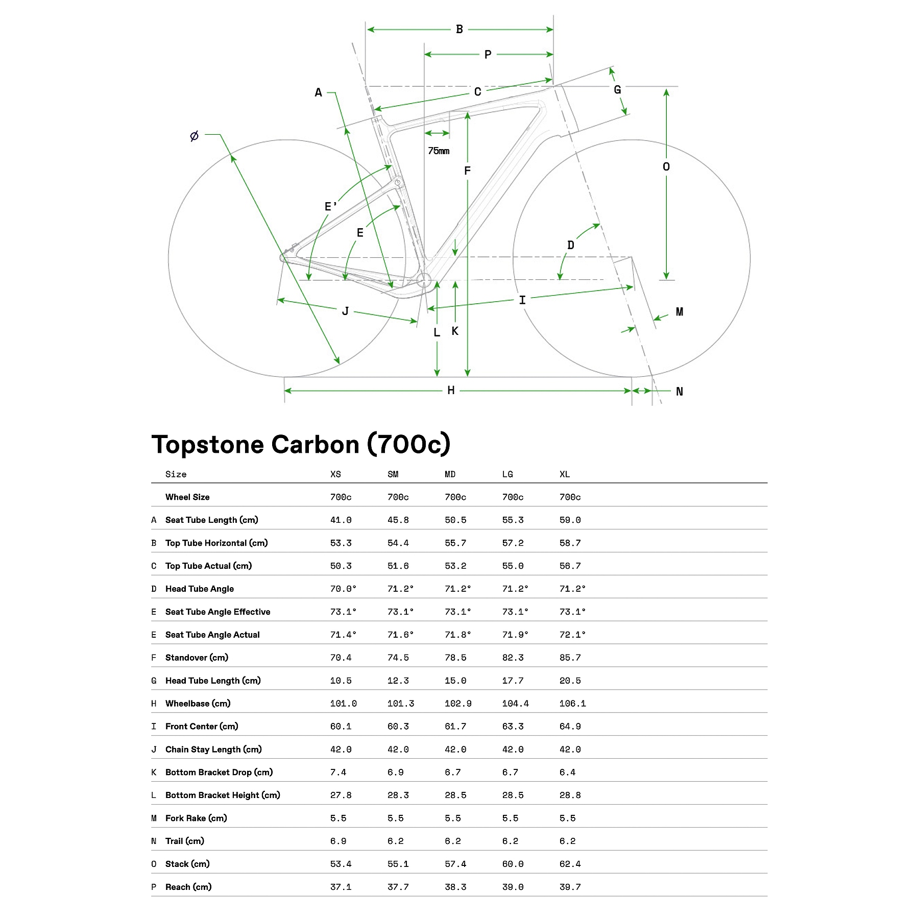 Fact Sheet of Cannondale TOPSTONE Carbon 2 L – Shimano GRX – Gravelbike – 2024 – jade Product Name: Cannondale TOPSTONE Carbon 2 L – Shimano GRX – Gravelbike – 2024 – jade Manufacturer: Cannondale Bikes Item Code: CAD677123 activity: Cycling gender: men material: Carbon usage bikesport: Allroad / Gravel hubs: Formula spokes: Stainless Steel ,14g rims: WTB KOM Light i23 TCS chain: Shimano HG M7100 cassette: Shimano CS-HG710 shifter: Shimano GRX 820 rear derailleur: Shimano GRX RD820 front derailleur: Shimano GRX FD820 bottom bracket: Shimano BSA 68mm chainring ratio: 48-31 crankset: Shimano GRX 820 brakes: Shimano GRX 800 ,160/160mm seat post model: SAVE Carbon SmartSense saddle: Fizik Terra Argo X5 bar tape: Fizik Solocush Soft handle bar: Cannondale 2 ShortDrop ,12° flare drop stem: Cannondale 2 fork: Topstone Carbon headset: Integrated / Carbon ,1-1/8" – 1-1/2" frame: Topstone Carbon ,Kingpin suspension groupset: Shimano gear ratio: 11-36 number of gears – front: 2 shifting system: 12-speed shifting actuation: Mechanical bike extras: with Lighting System brake type: Disc Brake wheel size: 28" (622mm) bike special accessories: SmartSense ,Cannondale wheel sensor bike lights: SmartSense light system seatpost: Seatpost rigid tires: Vittoria Terreno Dry ,700x38c max tire width: 45mm brake actuation: Hydraulic Model year: 2024 Collection: Full year Color: Green fork construction: Rigid Fork manufacturer item code: C15253U10 cable routing: internal Manufacturer page: http://www.cannondale.com/eur_de |