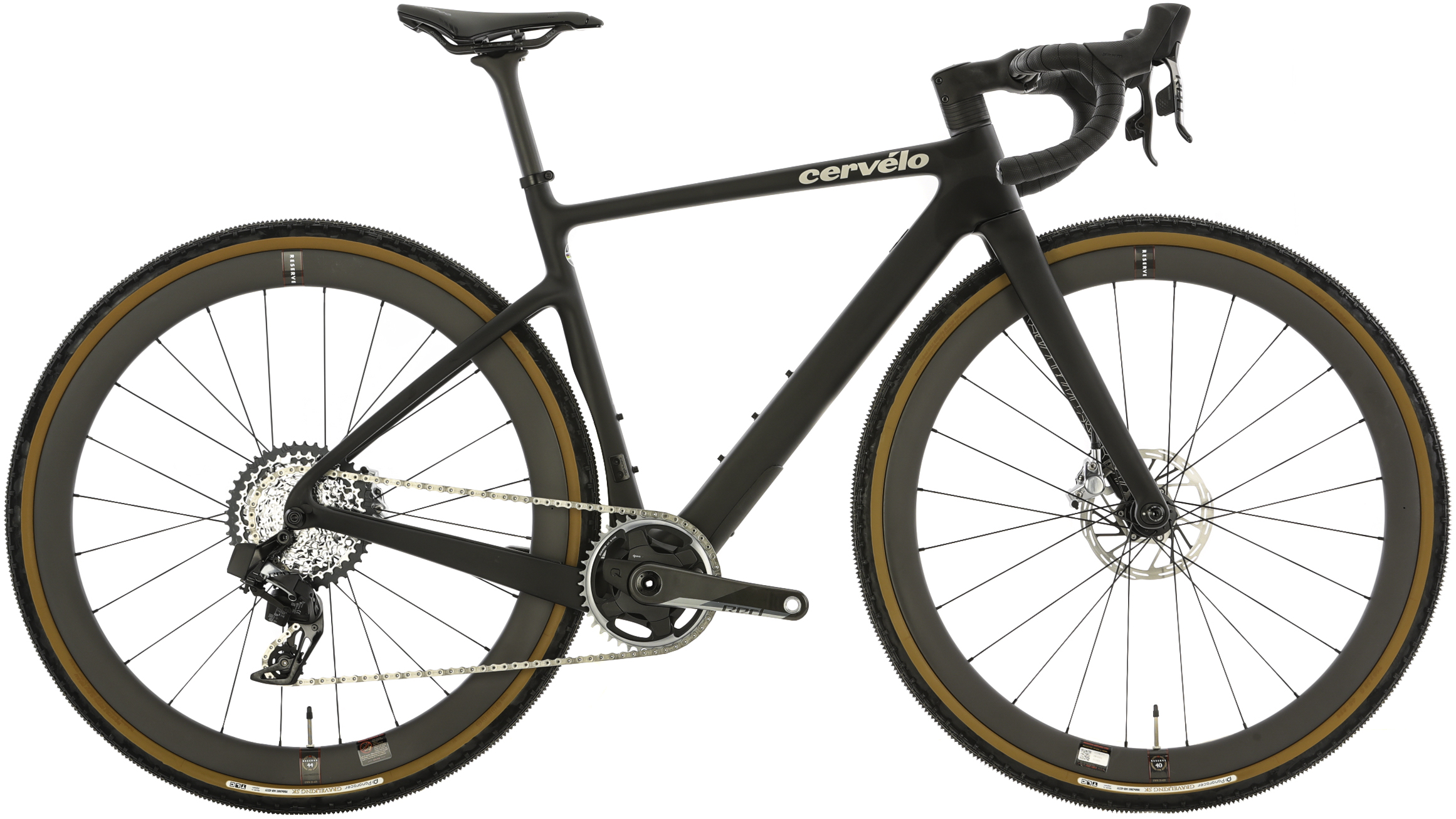 The Red XPLR AXS version of the Cervelo Aspero-5 comes with a SRAM Red XPLR AXS 12-speed wireless electronic drivetrain. With a 40T chainring up front and a 10-44T cassette on the rear, you’ll have no issues conquering those climbs and racing your way to the podium. SRAM Red hydraulic disc brakes provide excellent stopping power so you can descend with confidence. Reserve 40/44 wheels are paired with Panaracer Gravel King SK tires that can be set up tubeless for a smoother ride, better traction, and fewer flats. With the Cervelo SP19 Carbon Seatpost, you’ll have a smoother ride over rough terrain compared to an alloy seat post.