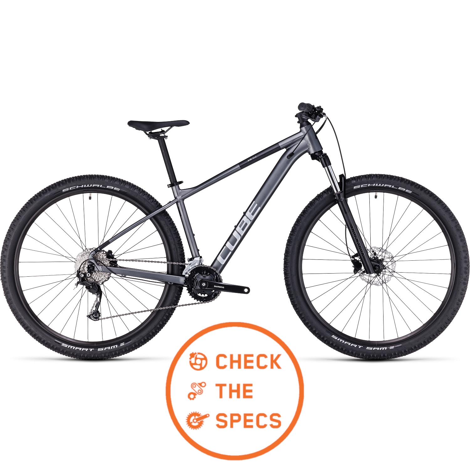 Fact Sheet of CUBE AIM SLX – Mountainbike – 2023 – graphite / metal A01 Product Name: CUBE AIM SLX – Mountainbike – 2023 – graphite / metal A01 Manufacturer: CUBE Bikes Item Code: CUB635498 activity: Cycling gender: men material: Aluminium usage bikesport: MTB hubs: Shimano HB-TX505 / Shimano FH-TX505 rims: CUBE ZX20 chain: KMC X9 cassette: Shimano CS-HG201 shifter: Shimano SL-M2010-9R ,Rapidfire-Plus rear derailleur: Shimano RD-M3100-SGS front derailleur: Shimano FD-M2020 bottom bracket: Thun Paso-ML ,73mm BSA chainring ratio: 36-22 crankset: Acid Prowheel Forged Zephir brakes: Shimano BR-MT200/UR300 ,160/160mm seat post model: CUBE Performance ,27.2mm saddle: Natural Fit Venec Lite handle bar: CUBE Rise Trail Bar ,680mm stem: CUBE Performance Race fork: RockShox Judy Silver TK Coil headset: CUBE FPH868 frame: Aluminium Lite ,AMF groupset: Shimano gear ratio: 11-36 number of gears – front: 2 shifting system: 9-speed shifting actuation: Mechanical brake type: Disc Brake wheel size: 27 ,5" / 650B (584mm) ,29" (622mm) grips: ACID React seatpost: Seatpost rigid frame type: Hardtail travel fork: 100mm pedals: ACID PP MTB tires: Schwalbe Smart Sam Active ,2.25" brake actuation: Hydraulic Model year: 2023 Color: Grey fork construction: Classic Suspension Fork weight: 13800g manufacturer item code: 601500 cable routing: internal Weight Source: Manufacturer Manufacturer page: http://www.cube.eu |