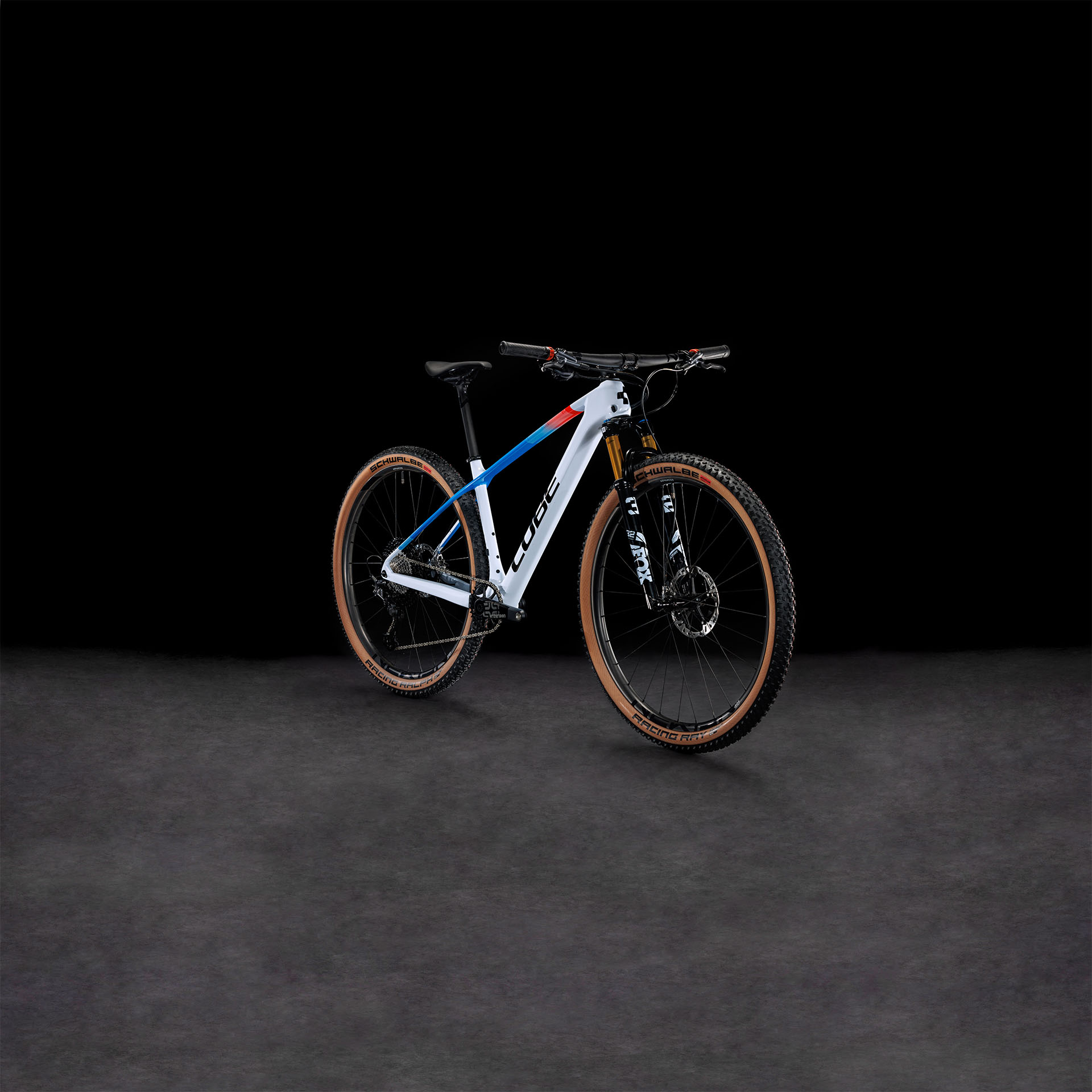 CUBE added a light, stiff and strong Newmen Advanced carbon tubeless-ready wheelset, fitted with folding Schwalbe tyres and ultra-light Aerothan tubes. And the supple, accurate Fox 32 Step-Cast Factory fork smooths your way to the podium.