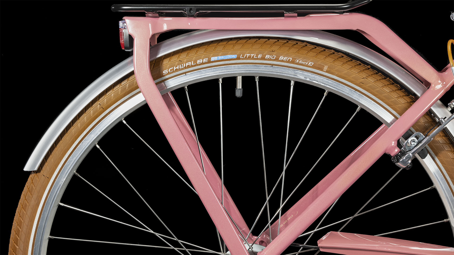 A comfortable ride position and safe handling are part of the package, and CUBE selected the 8-speed Shimano hub gears for their reliability and ease of use. A colour-coded luggage carrier, chain guard and suspension fork complete the look, and CUBE added dynamo-powered lights, mudguards and a kickstand too.