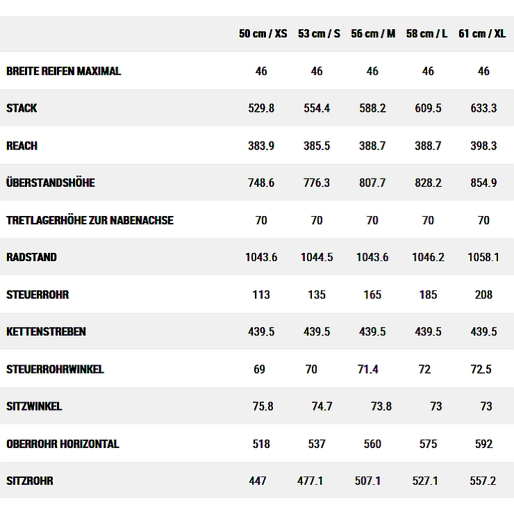 • 46mm tyre clearance (without mudguard)