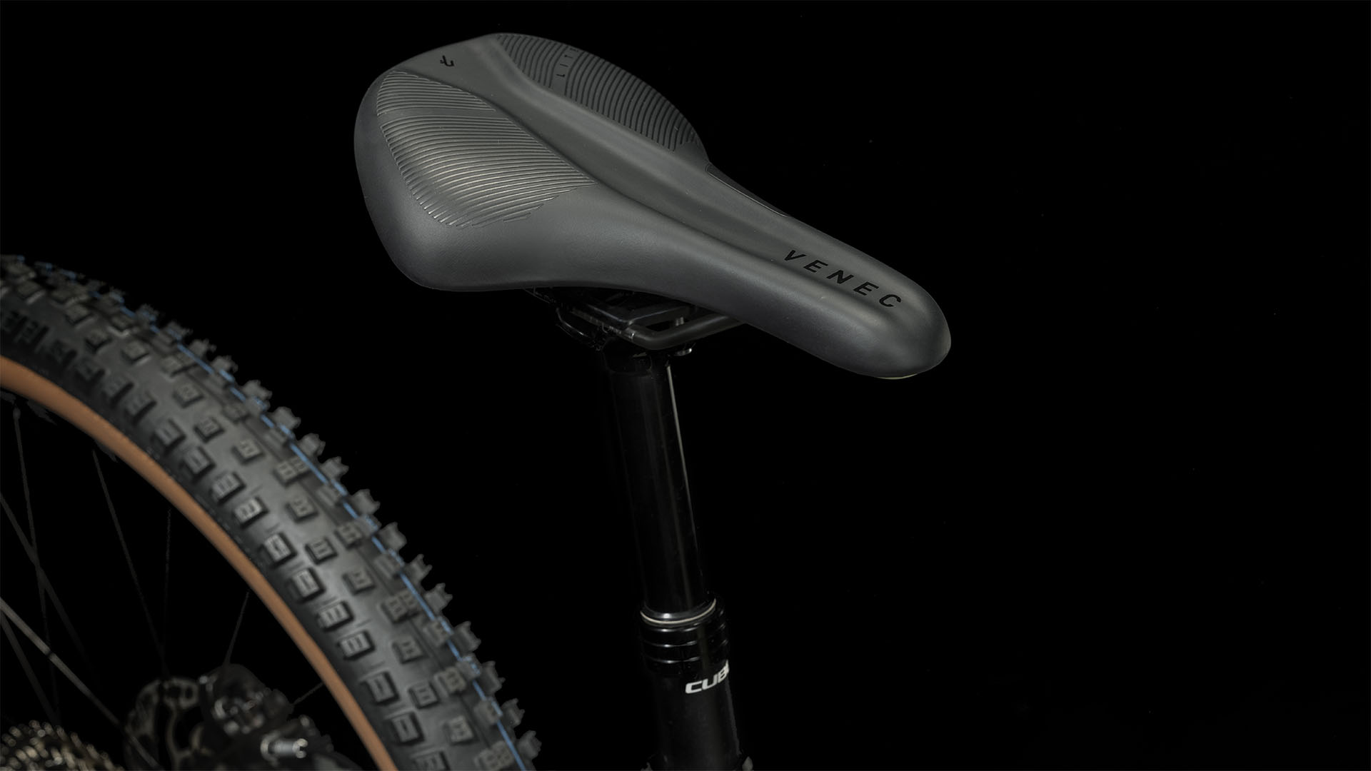 CUBE fitted a Newmen Evolution wheelset for its combination of low weight and durability, complemented by the smooth power of Magura’s MT Thirty hydraulic disc brakes. And Shimano’s 1×12 Deore transmission serves up a huge gear range and the peace of mind of legendary reliability.