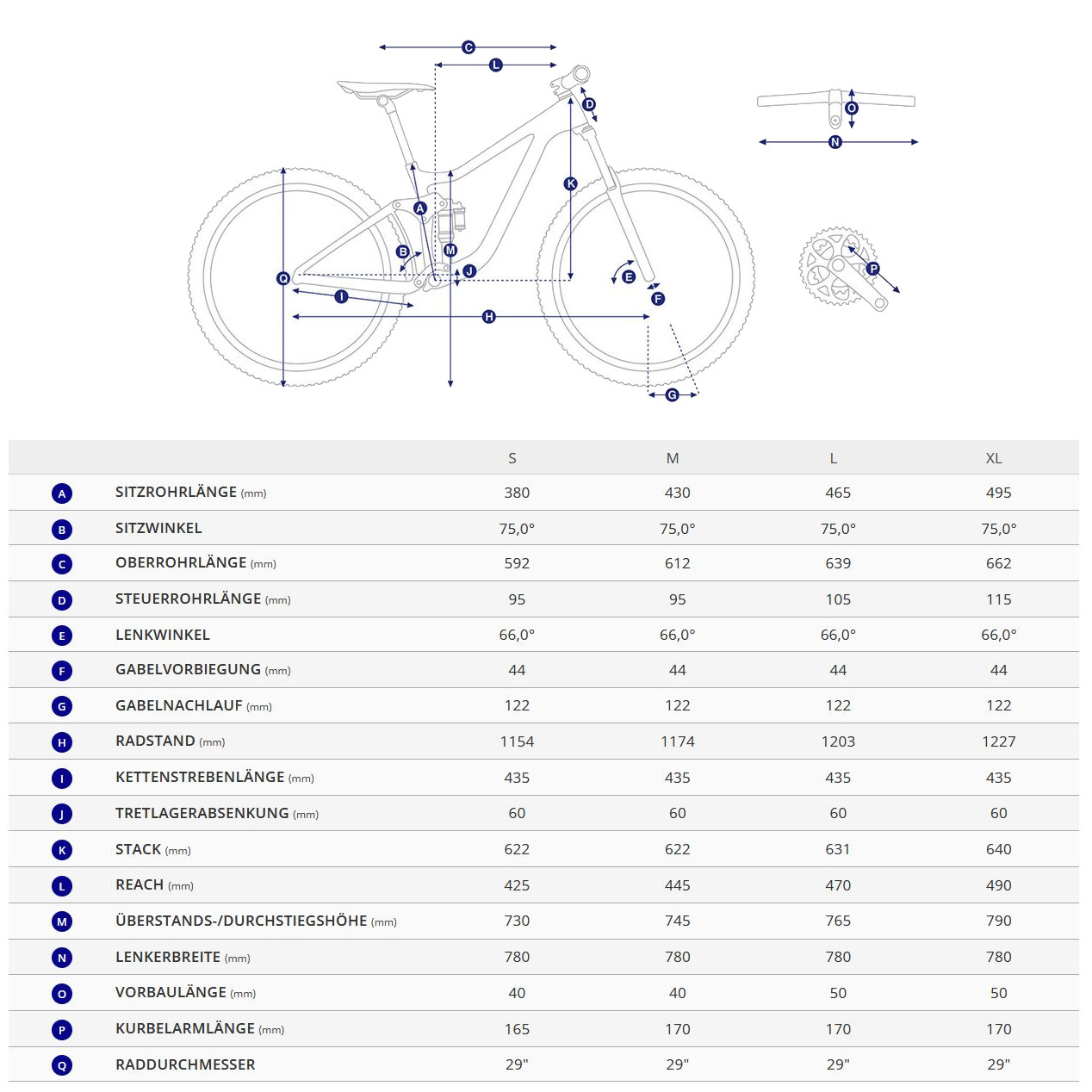 • Trail-tuned design – Balanced geometry with a 75-degree seat tube angle puts the rider in a powerful pedaling position on climbs, while the flatter 66-degree steer angle increases confidence and control on technical descents.