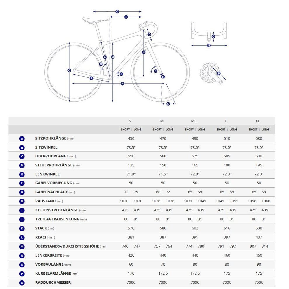 Fast and light: carbon frame and fork save more than 160 g compared to the previous model. The updated geometry includes a lower bottom bracket, a longer reach and a steeper head tube angle for better acceleration and climbing characteristics.