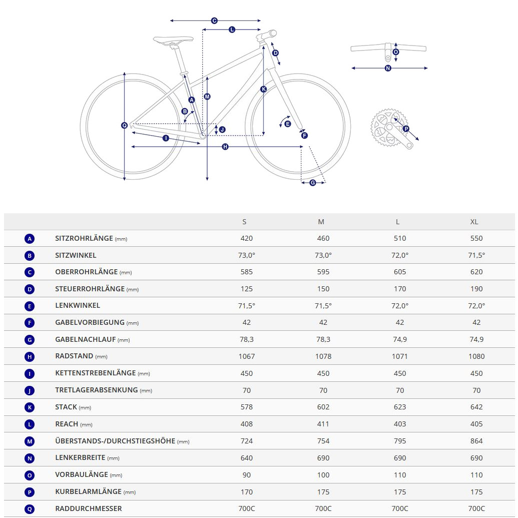 Fact Sheet of Giant TOUGHROAD SLR 2 – Cross Bike – 2024 – metal Product Name: Giant TOUGHROAD SLR 2 – Cross Bike – 2024 – metal Manufacturer: Giant Bikes Item Code: GNT553657 activity: Cycling gender: men material: Aluminium usage bikesport: Fitness hubs: GIANT GX28 Disc spokes: Stainless 14G rims: GIANT GX28 chain: KMC X9 cassette: Shimano CS-HG201 shifter: Shimano Altus M2010 ,2-speed rear derailleur: Shimano Alivio M3100 ,9-speed front derailleur: Shimano Acera bottom bracket: Cartridge chainring ratio: 28-44 crankset: ProWheel ,with chain guide brakes: Shimano BR-MT200 ,160 mm ,Lever: Shimano BL-MT201 seat post model: GIANT D-Fuse saddle: GIANT Sport handle bar: GIANT Connect XC stem: GIANT Contact fork: Advanced Carbon fork ,OD1 aluminium steerer ,QR frame: AluxX SLR Frame ,QR max. tire clearance: 53 mm groupset: Shimano gear ratio: 11-36 number of gears – front: 2 shifting system: 9-speed shifting actuation: Mechanical brake type: Disc Brake wheel size: 28" (622mm) bike special accessories: downtube guard grips: GIANT Connect Ergo seatpost: Seatpost rigid pedals: included tires: GIANT Sycamore S ,700x50c ,60 TPI (delivered with tube) brake actuation: Hydraulic Model year: 2024 Collection: Full year Color: Silver fork construction: Rigid Fork weight: 11620g cable routing: internal Weight Source: Manufacturer Manufacturer page: https://www.giant-bicycles.com |