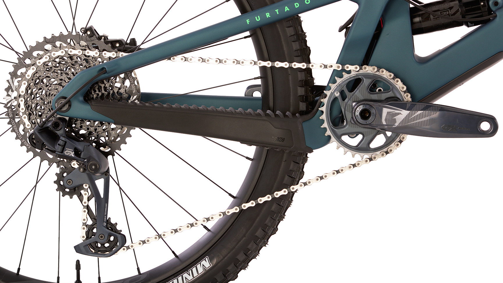 The Furtado 5 C S Bike is equipped with high-performance, reliable components that let you rail the corners with confidence. The mid-level 12-speed SRAM GX Eagle drivetrain offers precise shifting and a wide gear range. To keep you rolling, RaceFace AR Offset 30 rims are laced to durable DT Swiss 370 hubs with ultra-quick 36-tooth freehub engagement, while Maxxis Minion DHR II tires offer unwavering grip through technical rides. The legendary combination of a RockShox Pike Select+ 140mm suspension fork, and a RockShox Super Deluxe Select+ rear shock soak up the hits and keep coming back for more.