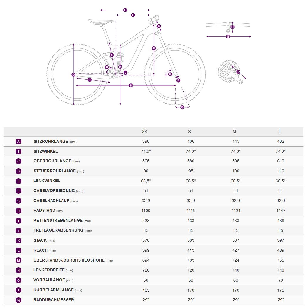 • Large 29″ wheels so-called in combination with 100mm rear suspension travel for an effortless glide over trails.