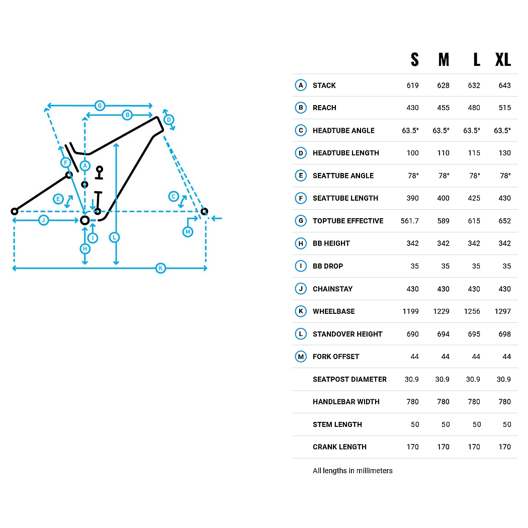 S: 125mm / M&L: 150mm / XL: 170mm travel saddle: Marin Trail Speed Concept Pro handle bar: Race Face Affect R 35