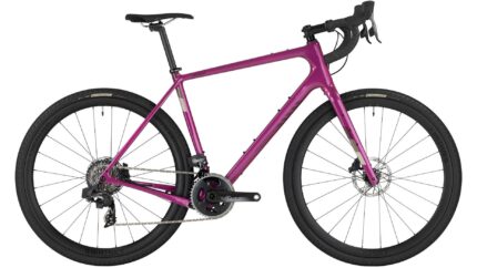 - Reynolds 853 steel frame with external cable routing, thru-axles, and carbon fork