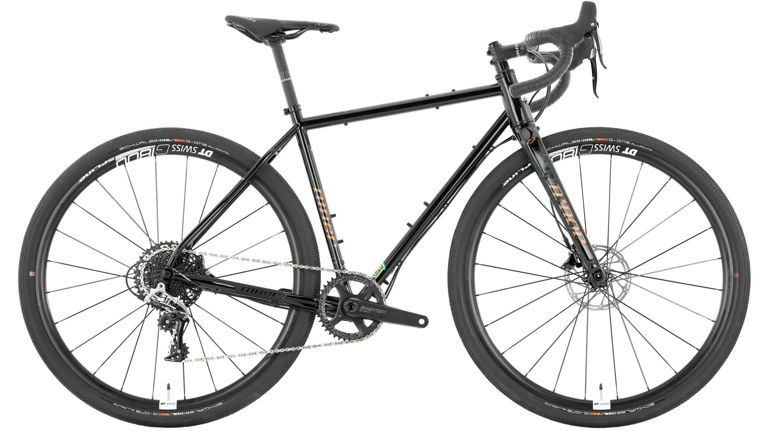 The 3-Star version of the Niner RLT 9 Steel comes with a SRAM Rival 11-speed drivetrain. The gearing is perfect for moderate hills and all-day adventures with an 11-42T cassette and a 40T chainring on the front. SRAM Rival 1 HRD brakes provide excellent stopping power so you can descend under control. With the DT Swiss G 1800 Spline 25 wheels and Schwalbe G-One Allround tires, you’ll be able to set them up tubeless for a smoother ride, better traction, and fewer flats.