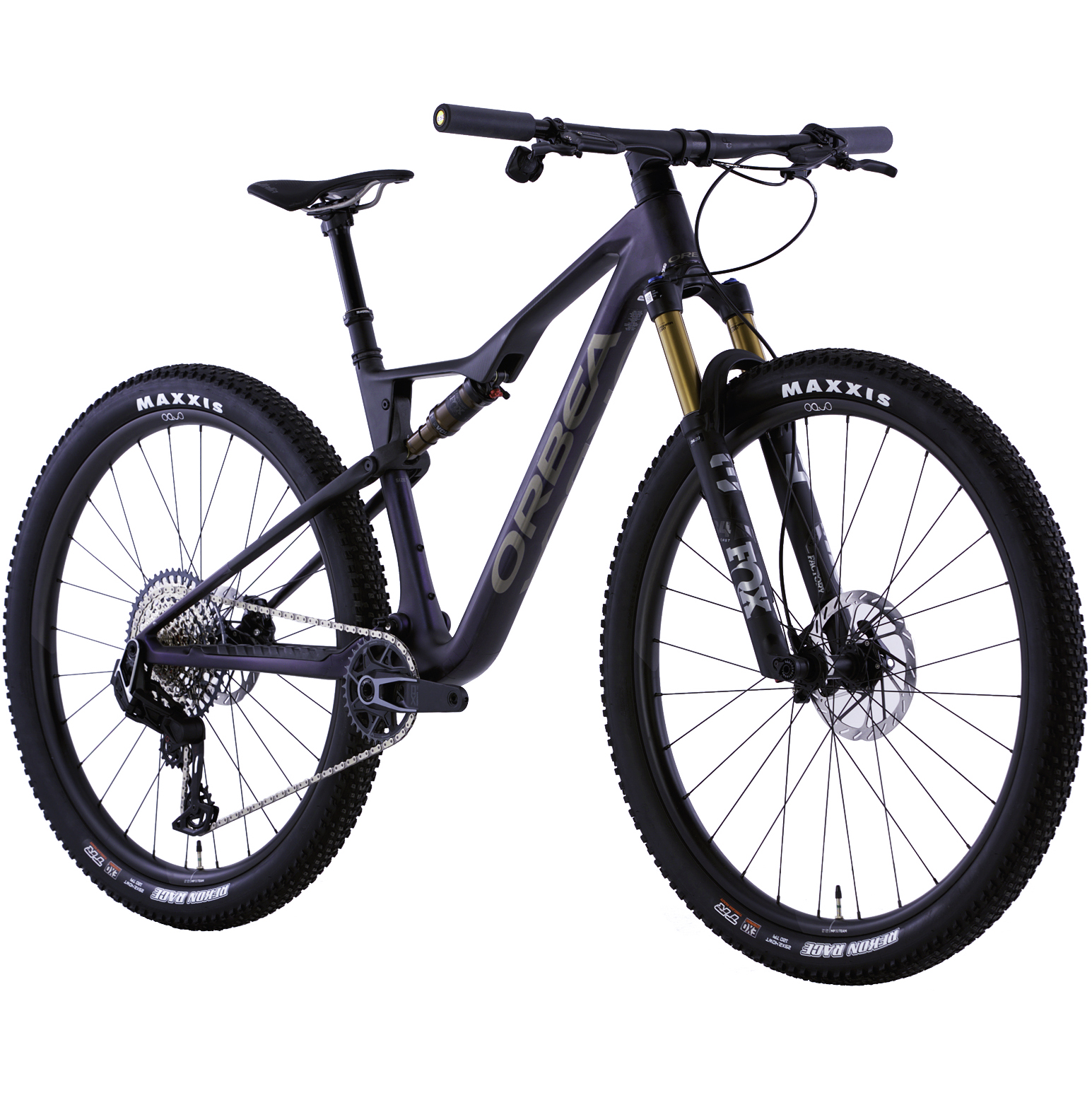 The M-PRO X0 AXS T-Type version of the Orbea Oiz comes with a SRAM X0 Eagle AXS 12-speed drivetrain. With an ultra-wide 10-52T cassette on the rear, you’ll have no issues climbing all the way to the top of the summit and getting on that podium during your next marathon race. SRAM Level Silver 2-piston hydraulic disc brakes provide exceptional stopping power so you can descend under control. OQUO Mountain Performance MP30TEAM tubeless-ready carbon fiber rims are paired with Maxxis Rekon Race Tires that can be set up tubeless for a smoother ride, better traction, and fewer flats. Ditch them tubes! With the Fox Transfer SL Performance Dropper Post, you’ll get 125/150mm of drop so you can descend under control and climb efficiently without dismounting your bike.