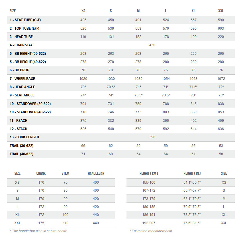 - Combination of longer top tube and shorter stem for precise steering maneuvers off-road