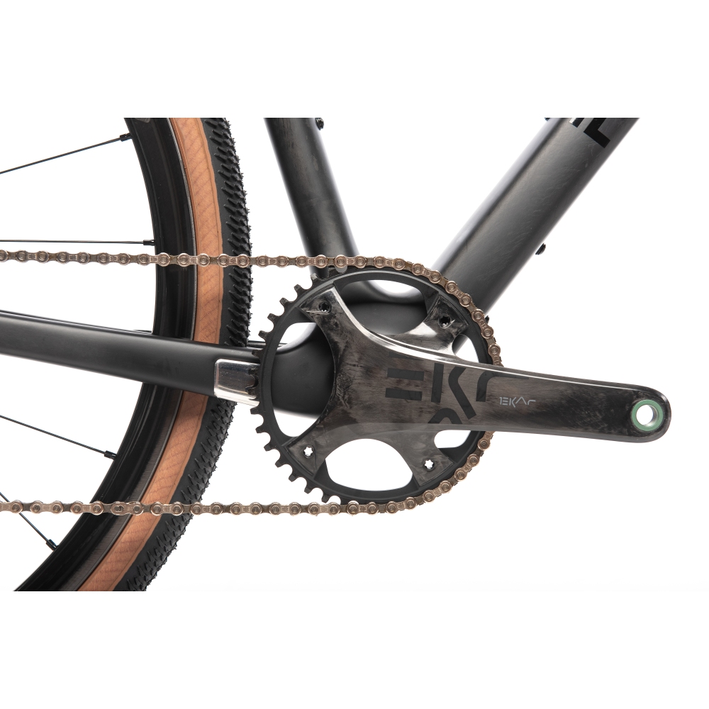 The Anemos Masterpiece relies on Campagnolo’s “Ekar” single drivetrain from the factory, with 13 gears – currently the only one on the market with this range. The transmission consists of a chainring with 40 teeth and a cassette with 13 sprockets, with 9 to 42 teeth.