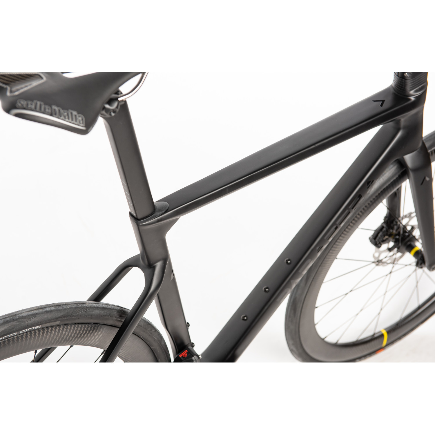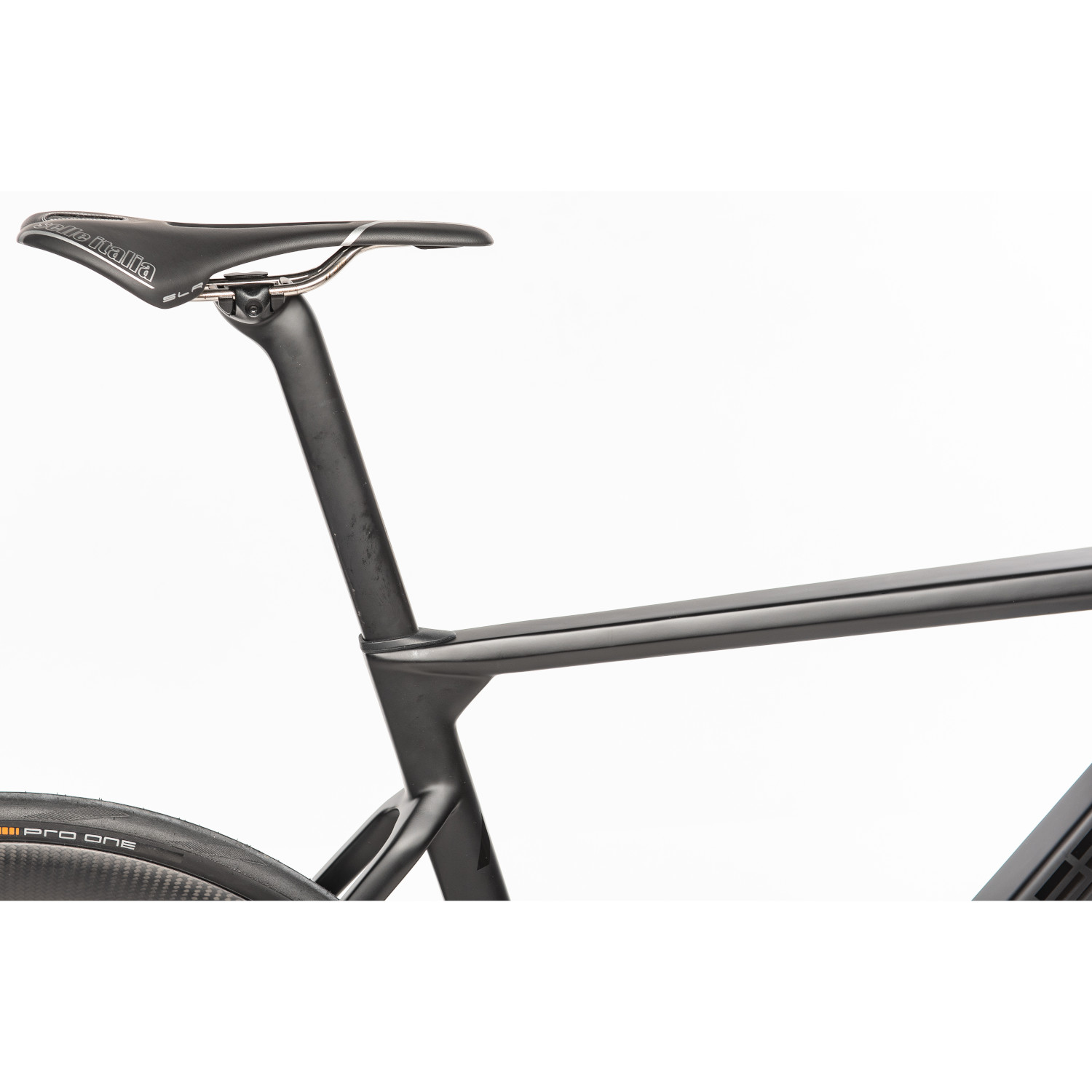 The Atmos² is much more aerodynamic than the “old” Atmos. It minimizes air resistance by using larger frame profiles. The tubes of the frame and the seat post are made entirely of T800 carbon and have an aerodynamic profile.