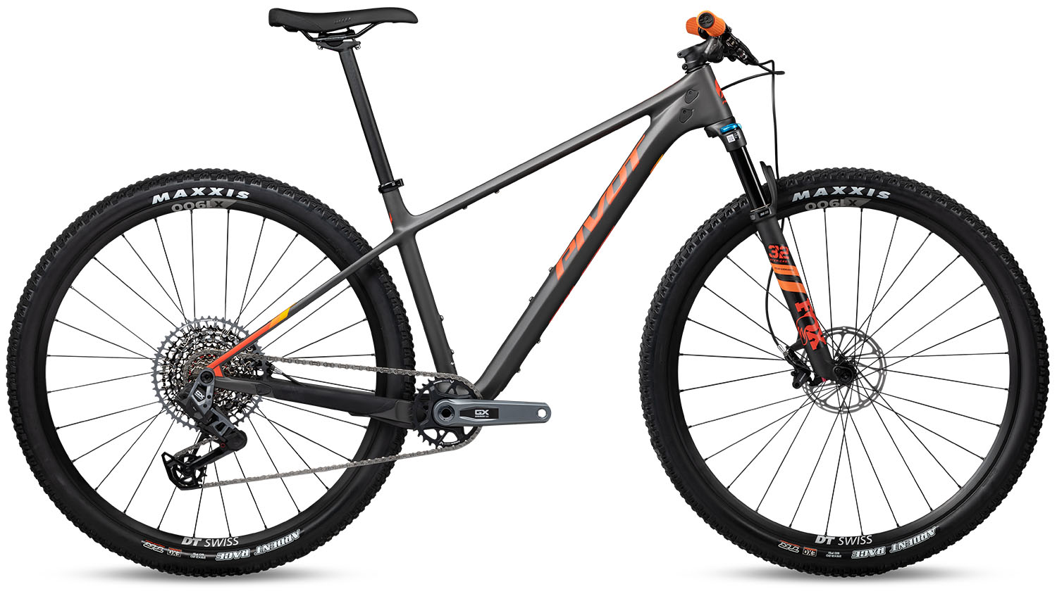 The Ride GX Eagle Transmission version of the Pivot LES SL comes with a Shimano GX Eagle Transmission wireless electronic 12-speed drivetrain. With a 32T chainring up front and a 10-52T cassette on the rear, you’ll have no issues conquering tough climbs and pedaling through difficult terrain. SRAM Level TLM 2-piston hydraulic disc brakes provide excellent stopping power so you can descend with confidence. DT Swiss X1900 Rims are paired with Maxxis Ardent Race Tires that can be set up tubeless for a smoother ride, better traction, and fewer flats.