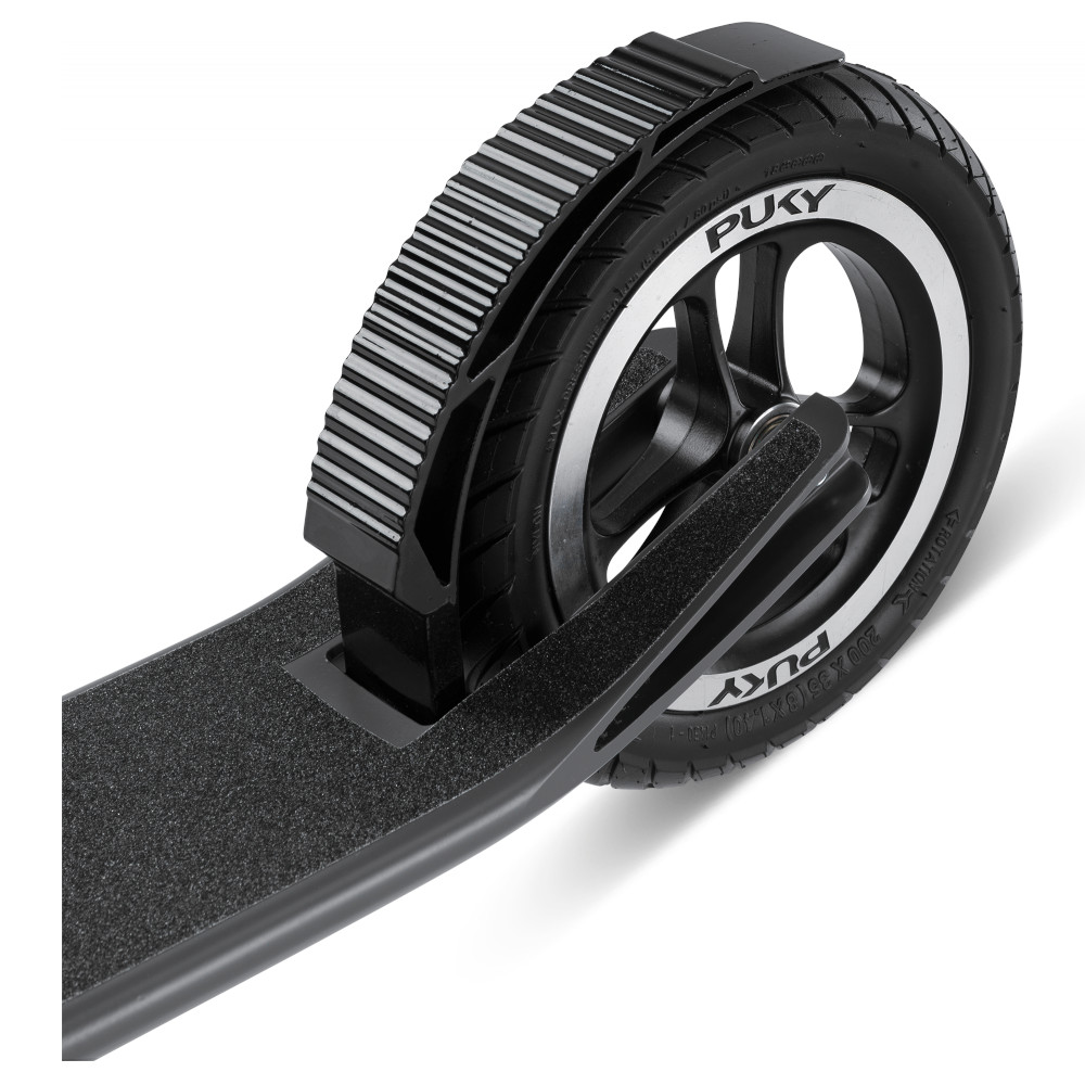 With the relaunch of the popular SpeedUs scooter, Puky relies on perfectly matched geometry and high-quality, extra-large wheels with pneumatic tires. The new generation has particularly balanced riding characteristics and is very quiet. It can be easily folded for transport and can be used from 5 years up to adulthood. The side stand is integrated into the large footboard to save space.