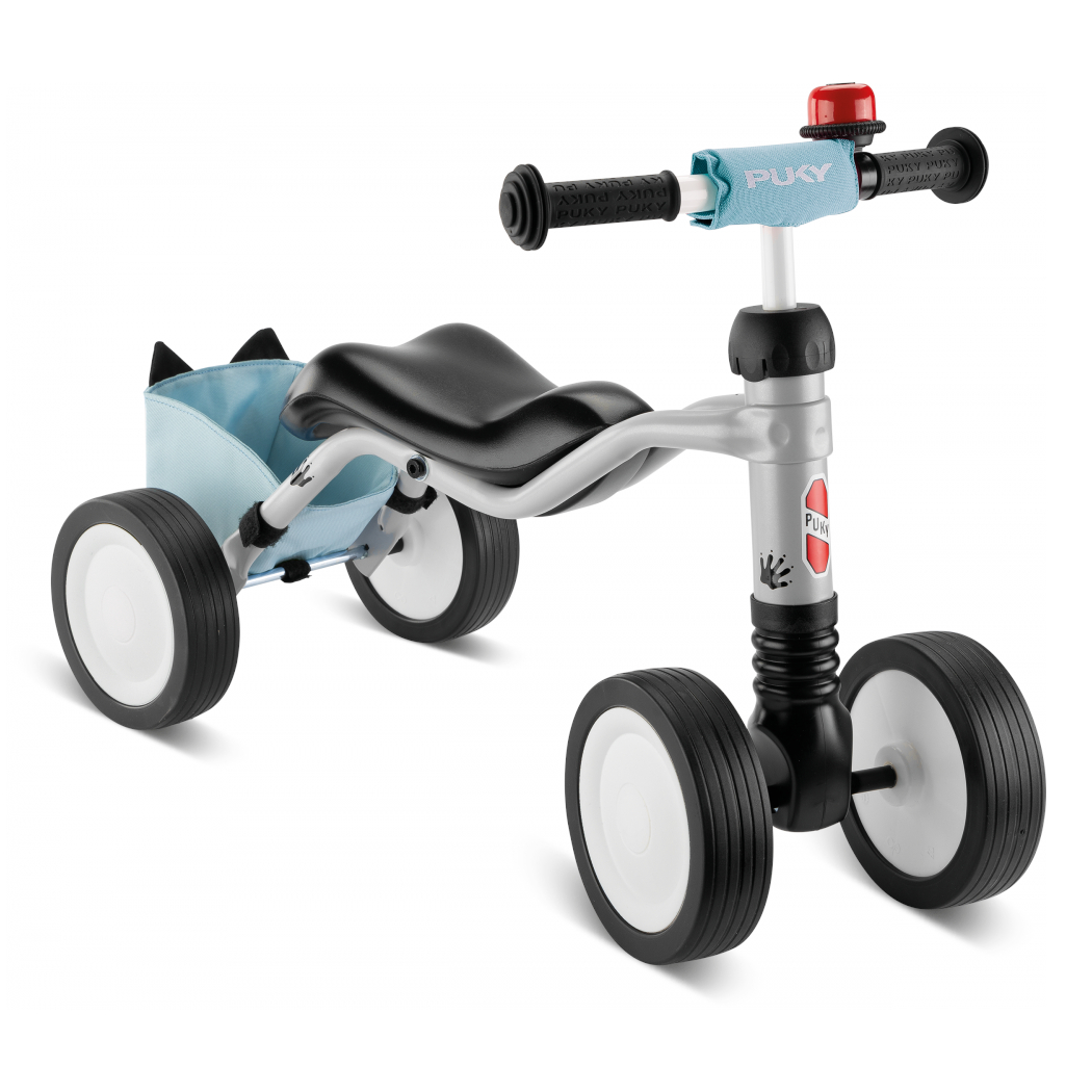 Steering angle limitation – Useful for the smallest ones. The vehicles of the “My first PUKY” series have a limitation of the steering angle to ensure a stable stand. This strengthens the confidence of beginners during their first attempts at riding. Since higher speeds are not reached due to the design, such a limitation also does not pose a risk of injury in case of a fall.