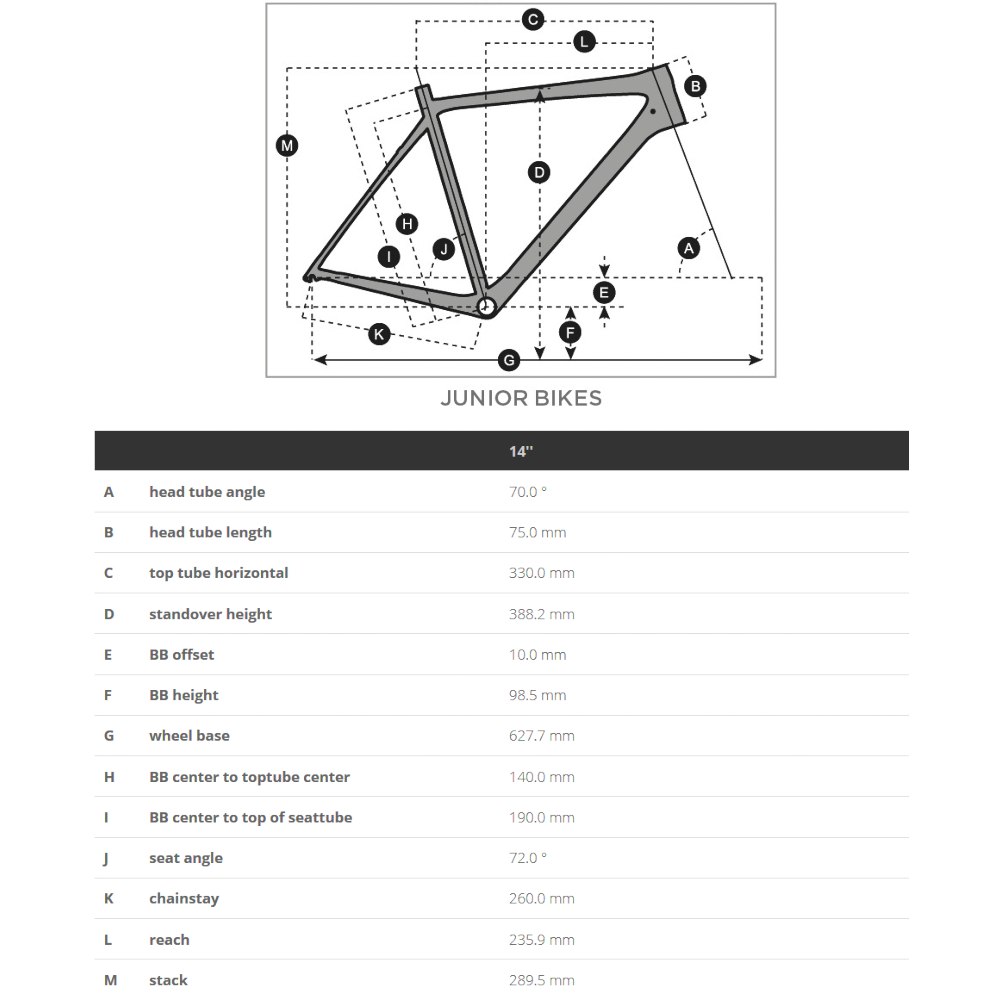Fact Sheet of SCOTT ROXTER 14 – 14" Children's Bike – 2023 Product Name: SCOTT ROXTER 14 – 14" Children's Bike – 2023 Manufacturer: SCOTT Bikes Item Code: SCB631330 activity: Cycling gender: kids material: Aluminium hubs: KT-183F ,KT-305RB rims: AL chain: KMC S1 chainring ratio: 28 brakes: V-Brake / Coaster seat post model: AL ,26.8mm ,160mm saddle: Syncros Roxter JR14 handle bar: Junior Mini Riser ,480mm stem: AL ,30mm fork: HiTen 14" headset: 1 1/8" frame: JR14 Coaster ,AL 6061 groupset: None gear ratio: 18 number of gears – front: 1 shifting system: Single Speed (1/8") shifting actuation: None brake type: Rim Brake ,Coaster Brake wheel size: 14" (254mm) seatpost: Seatpost rigid pedals: MARWI SP-201 tires: Kenda K841 Contact ,14 x 2.125" brake actuation: Mechanical Model year: 2023 Collection: Full year Color: Green weight: 7400g manufacturer item code: 290775 cable routing: external Weight Source: Manufacturer |