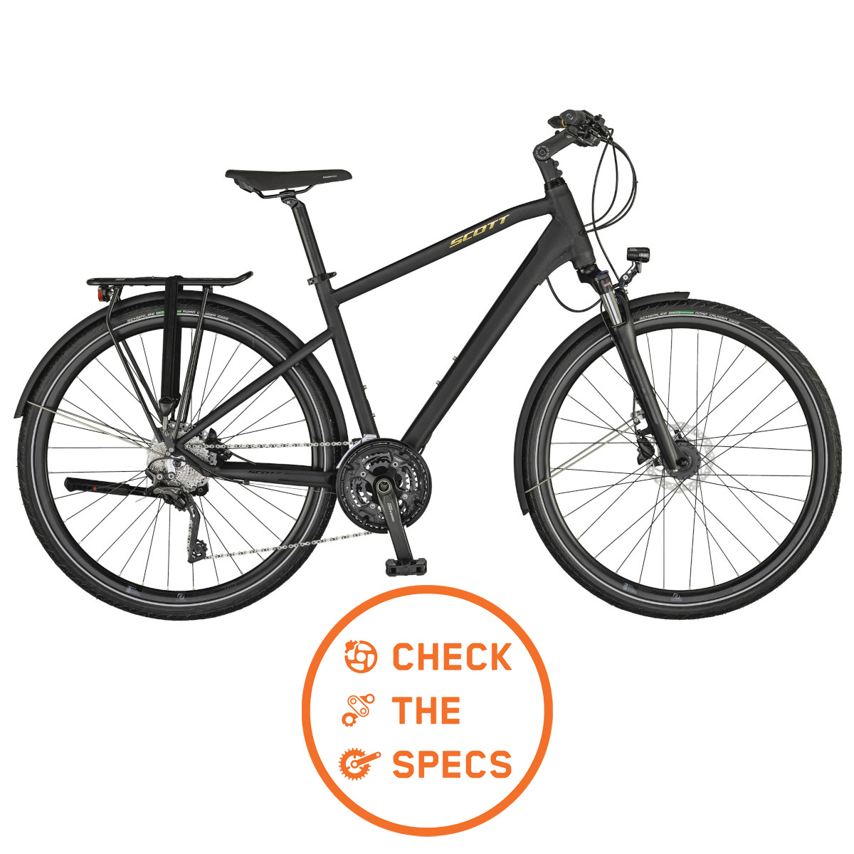 The SCOTT SUB Sport 20 offers a sporty trekking geometry for just any kind of trip, whether short or long. With Shimano 30-speed gears and a custom Racktime rack compatible with Snap’it accessories, this bike is literally burning for adventure.