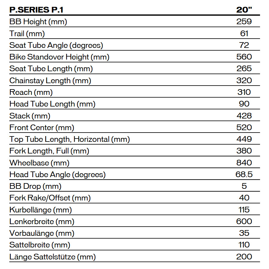 Fact Sheet of Specialized P.1 – 20" Kids Dirt Bike – 2024 – satin rusted red overspray / blaze / morning mist Product Name: Specialized P.1 – 20" Kids Dirt Bike – 2024 – satin rusted red overspray / blaze / morning mist Manufacturer: Specialized Bikes Item Code: SBC668143 activity: Cycling gender: kids material: Aluminium usage bikesport: BMX / Dirt / Street hubs: Specialized AL rims: Specialized P.Series chain: KMC Z1 bottom bracket: BSA 73mm chainring ratio: 30 crankset: Specialized P.series brakes: Radius CX7 ,160/160mm seat post model: Specialized ,6061 AL ,30.9mm saddle: Specialized P.series handle bar: Specialized AL ,Mini-Rise ,6° Backsweep ,19mm Rise ,600mm stem: 3D-Forged ,31.8mm ,6° fork: Specialized A1 AL frame: Specialized A1 Premium AL groupset: None gear ratio: 13 number of gears – front: 1 shifting system: Single Speed (1/8") shifting actuation: None brake type: Disc Brake wheel size: 20" (406mm) grips: Specialized Trail seatpost: Seatpost rigid frame type: Hardtail pedals: Specialized Platform tires: Specialzied Kicker Sport ,20×2.10" brake actuation: Mechanical Model year: 2024 Collection: Full year Color: Orange fork construction: Rigid Fork weight: 9370g manufacturer item code: 91923-8020 cable routing: internal Weight Source: Manufacturer Manufacturer page: http://www.specialized.com |
