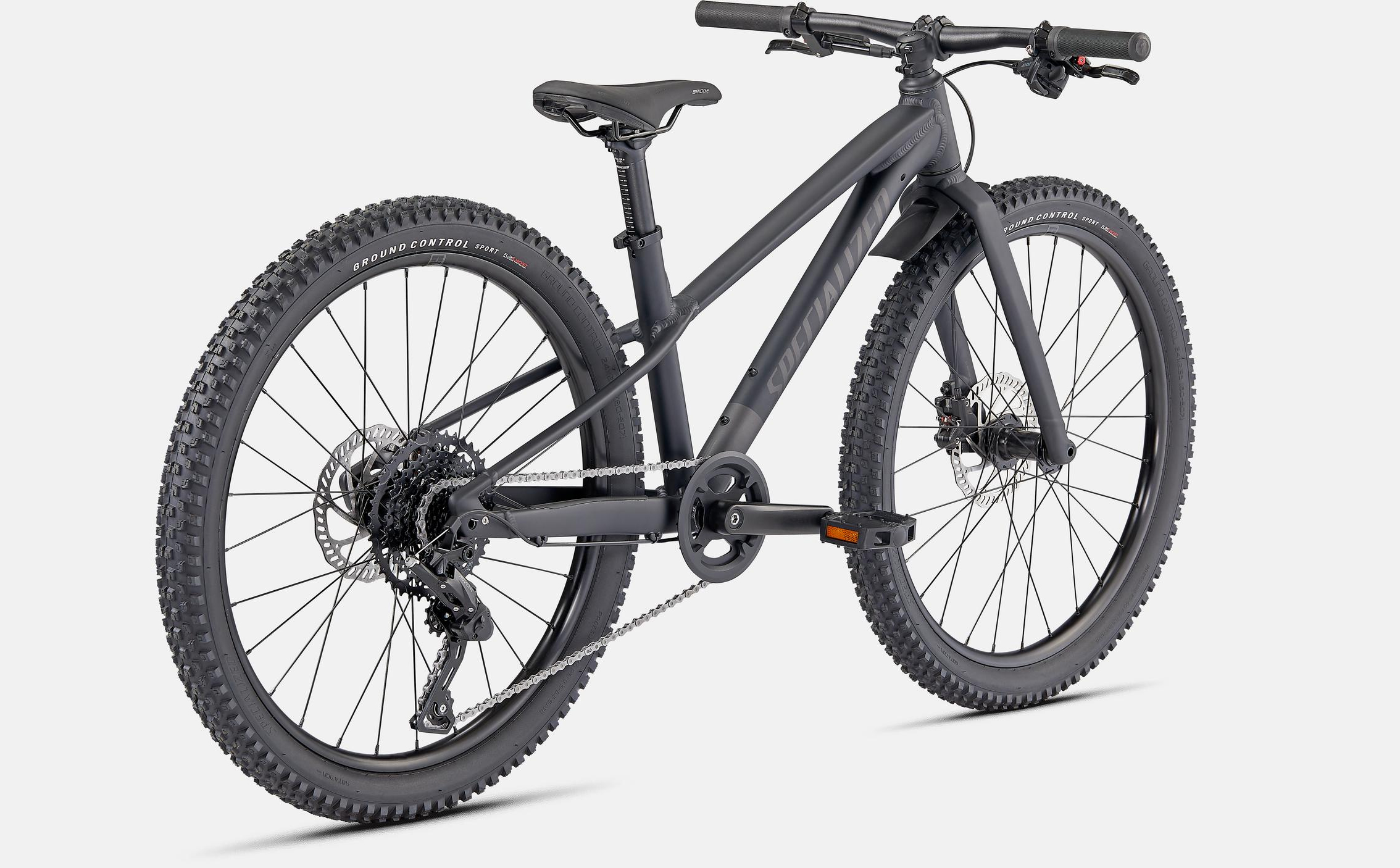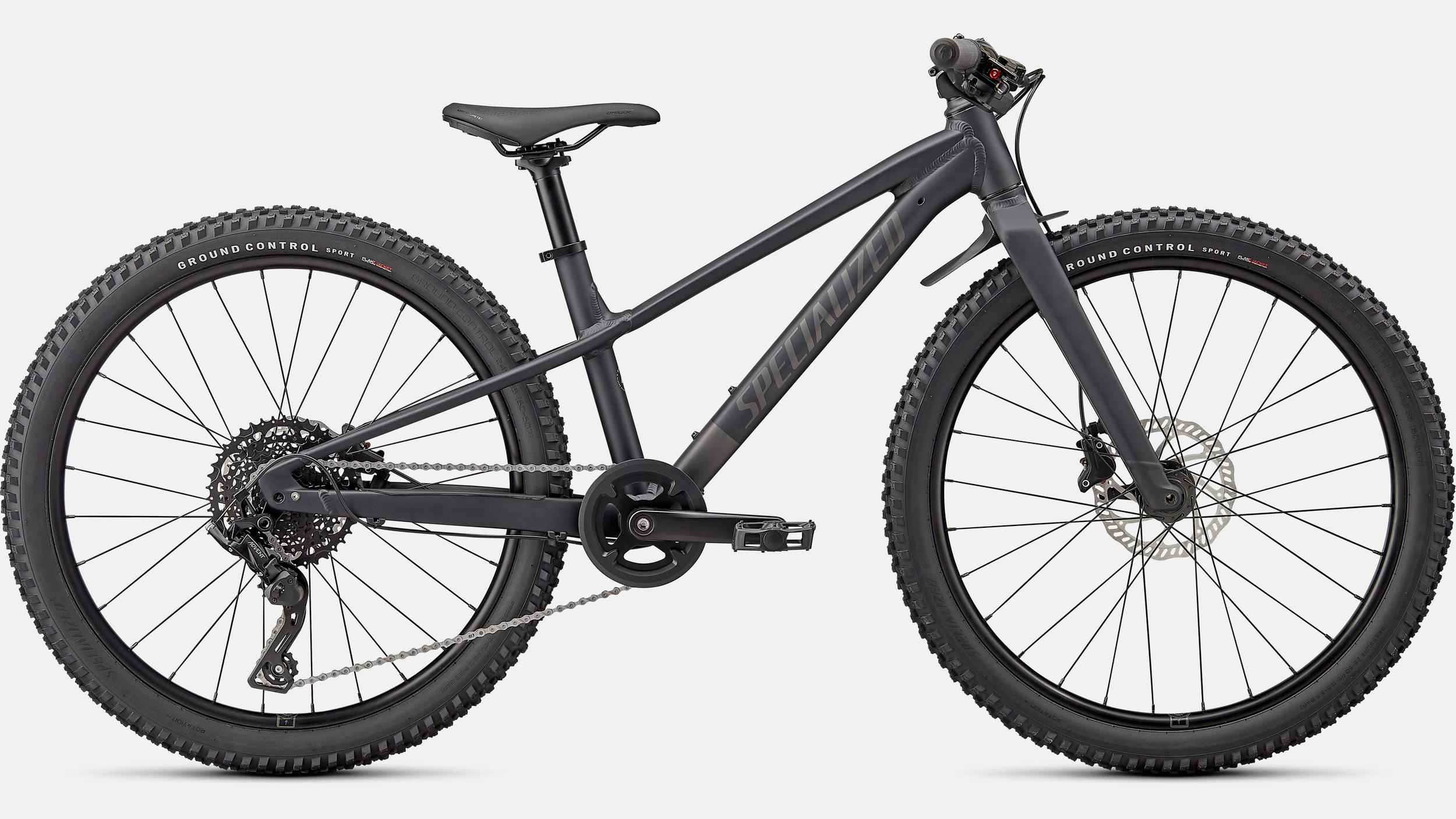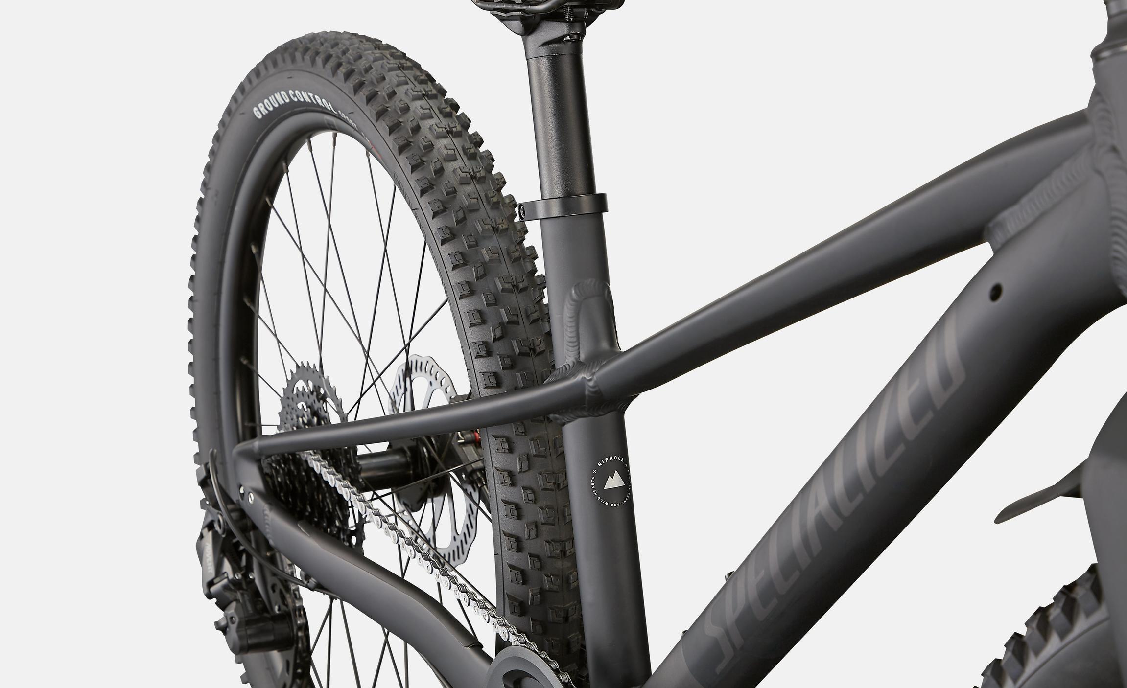 The 24″ version of the Specialized Riprock comes with a MicroSHIFT Advent 9-speed drivetrain. This includes a cassette that has an ultra-wide 11-42T gear range that makes climbing and pedaling through those rough patches much easier. C-Star Hydraulic Disc Brakes provide reliable stopping power so your young rider can descend under control. Alloy rims are paired with Specialized Ground Control Sport tires that provide excellent traction anywhere they go.