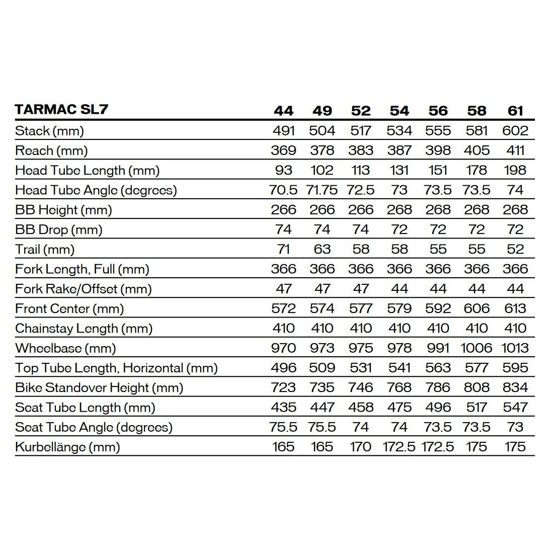 6° fork: FACT Carbon frame: Tarmac SL7 FACT 9r Carbon groupset: Shimano gear ratio: 11-34 number of gears – front: 1 shifting system: 12-speed shifting actuation: Mechanical brake type: Disc Brake wheel size: 28" (622mm) seatpost: Seatpost rigid tires: Turbo Pro