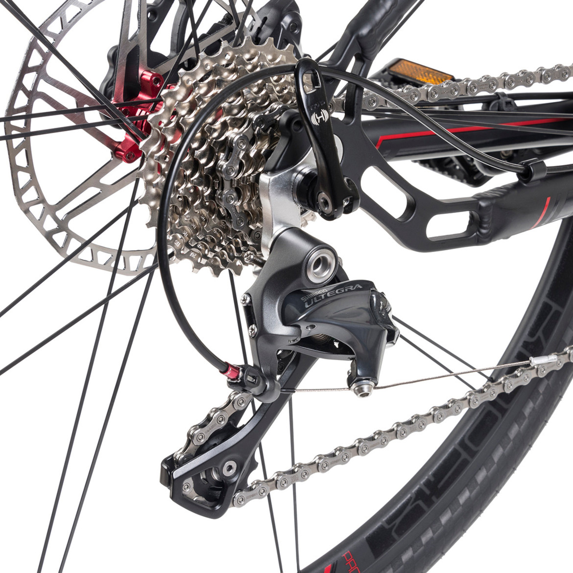 Kinetix Pro X 26″ wheels, hand-spoked withSapim Straight Pull spokesShimano Ultegra/105 22-speed gears with road bike ratios- Shimano hydraulic disc brakes