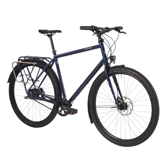 Bold adventures require a powerful bike. The Tout Terrain Tanami II is a fast touring bike that is more than ready to leave rough roads and long distances behind. It combines a proven Thermocrom steel frame with the rolling capabilities of a 29″ wheelset and a reliable Rohloff gear hub. The rear rack and mudguards also provide versatility in a wide range of riding conditions.