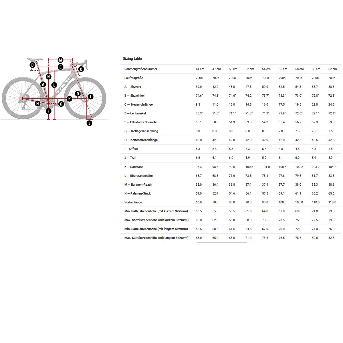 Fact Sheet of Trek Domane SL 5 Gen 4 105 Carbon Roadbike – 2023 – Blue Sage Product Name: Trek Domane SL 5 Gen 4 105 Carbon Roadbike – 2023 – Blue Sage Manufacturer: Trek Bikes Item Code: TBI620269 activity: Cycling gender: men material: Carbon usage bikesport: Road Bike hubs: Bontrager ,Centerlock rims: Bontrager Paradigm SL chain: Shimano 105 HG601 cassette: Shimano 105 HG700-11 shifter: Shimano 105 rear derailleur: Shimano 105 R7000 front derailleur: Shimano 105 R7000 bottom bracket: Praxis T47 chainring ratio: 50-34 crankset: Shimano 105 R7000 brakes: Shimano 105 hydr. ,Centerlock ,160mm seat post model: Domane Carbon ,KVF2 ,20mm Offset saddle: Bontrager P3 Verse Comp bar tape: Bontrager Supertack Perf handle bar: Bontrager Elite IsoZone VR-SF ,Aluminium ,Di2 ,75mm Reach ,128mm Drop stem: Bontrager RCS Pro ,7° fork: Domane SL Carbon frame: 500 Series OCLV Carbon ,IsoSpeed ,3S groupset: Shimano gear ratio: 11-34 number of gears – front: 2 shifting system: 11-speed shifting actuation: Mechanical brake type: Disc Brake wheel size: 28" (622mm) seatpost: Seatpost rigid tires: Bontrager R3 Hard-Case Lite ,Tubeless Ready ,120 TPI ,700 x 32C brake actuation: Hydraulic Model year: 2023 Collection: Full year Color: Turquoise fork construction: Rigid Fork weight: 8930g cable routing: internal Weight Source: Manufacturer Manufacturer page: http://www.trekbikes.com |