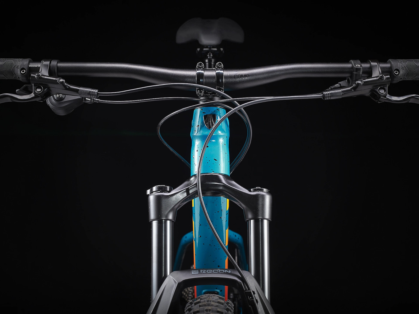• A long reach, a flat steering angle, a steep seat angle and short chainstays bring maximum riding fun and maximum agility while inspiring confidence.